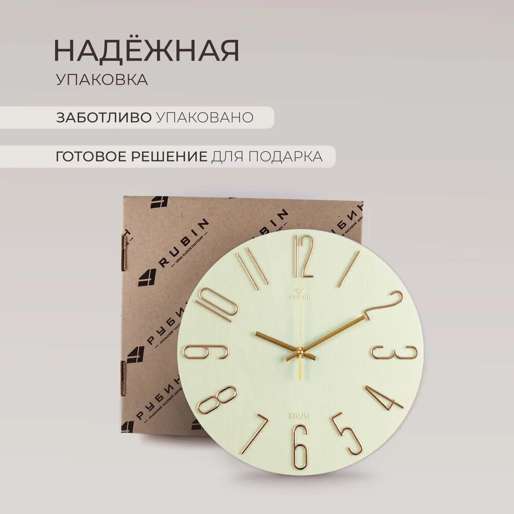 Часы настенные бесшумные интерьерные Рубин 34,5 см светлые кварцевые
