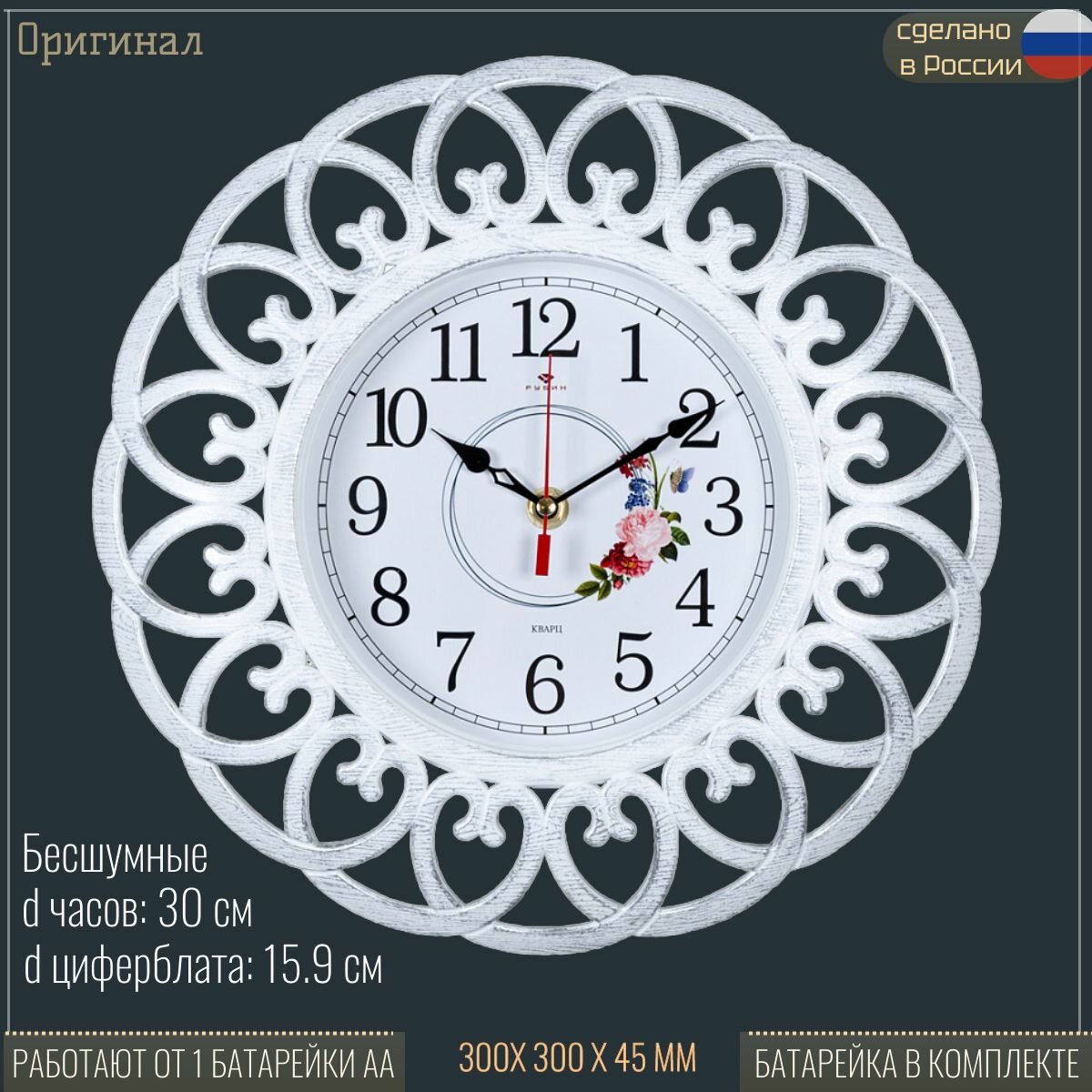 Часы настенные Рубин круглые, часы настенные бесшумные 32см, интерьерные