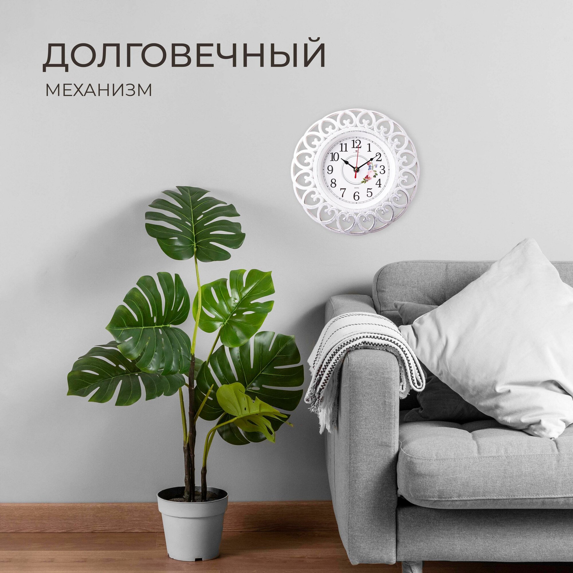 Часы настенные ажурные Рубин, 38см большие кварцевые, белые с плавным ходом