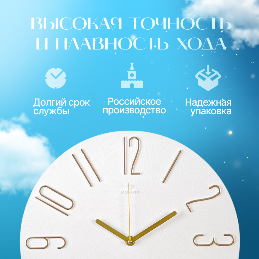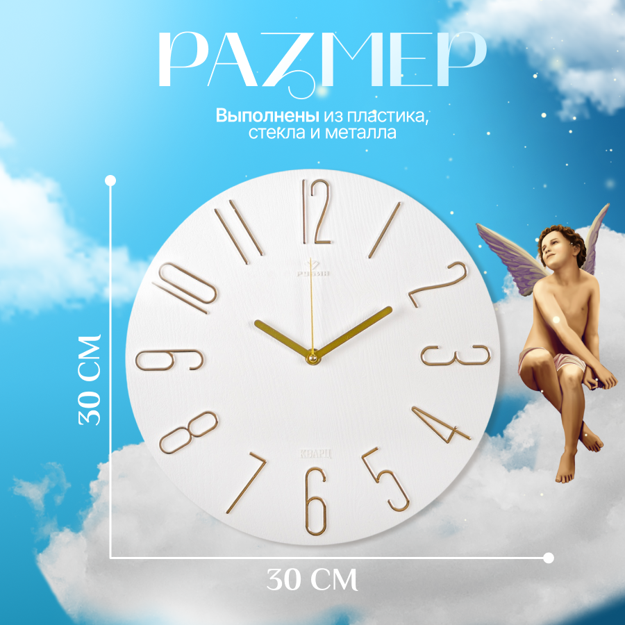 Часы настенные интерьерные, Рубин, часы бесшумные на кухню белые с золотым циферблатом 30 см
