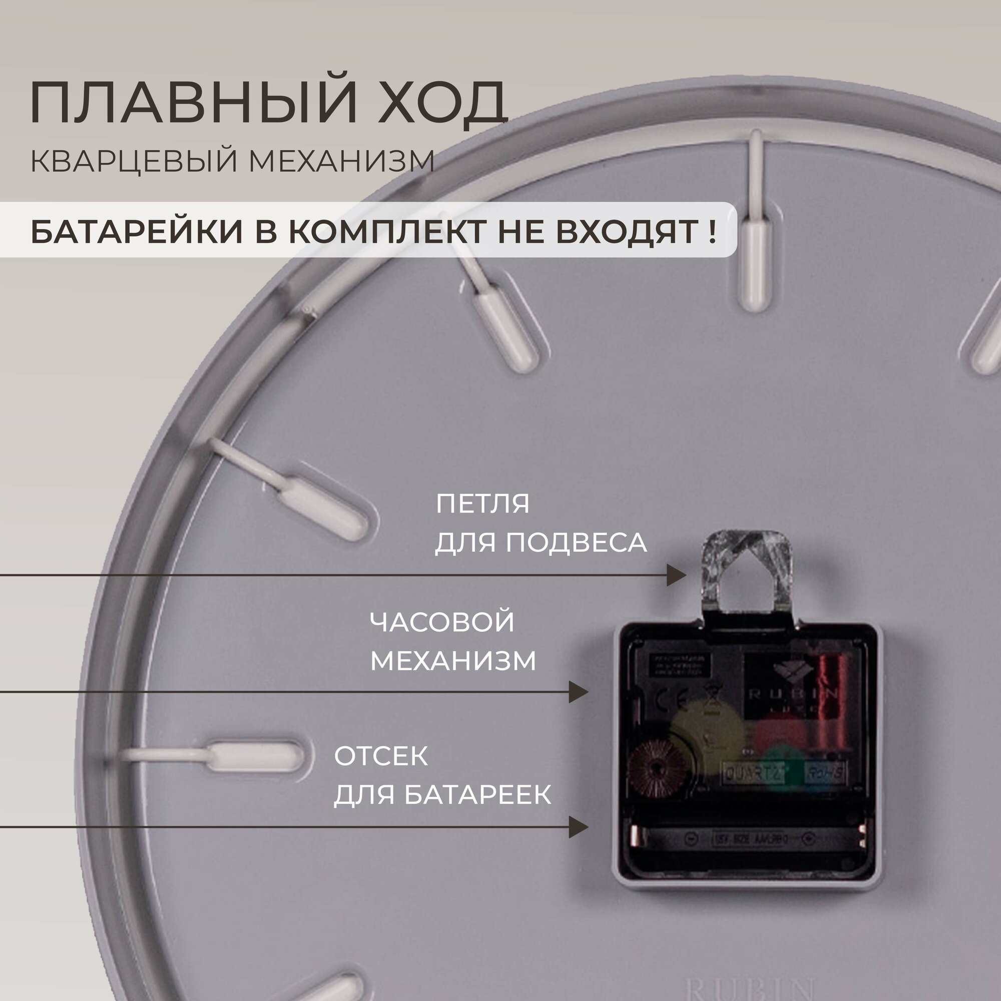 Часы настенные Рубин круглые, часы настенные бесшумные 32см, интерьерные