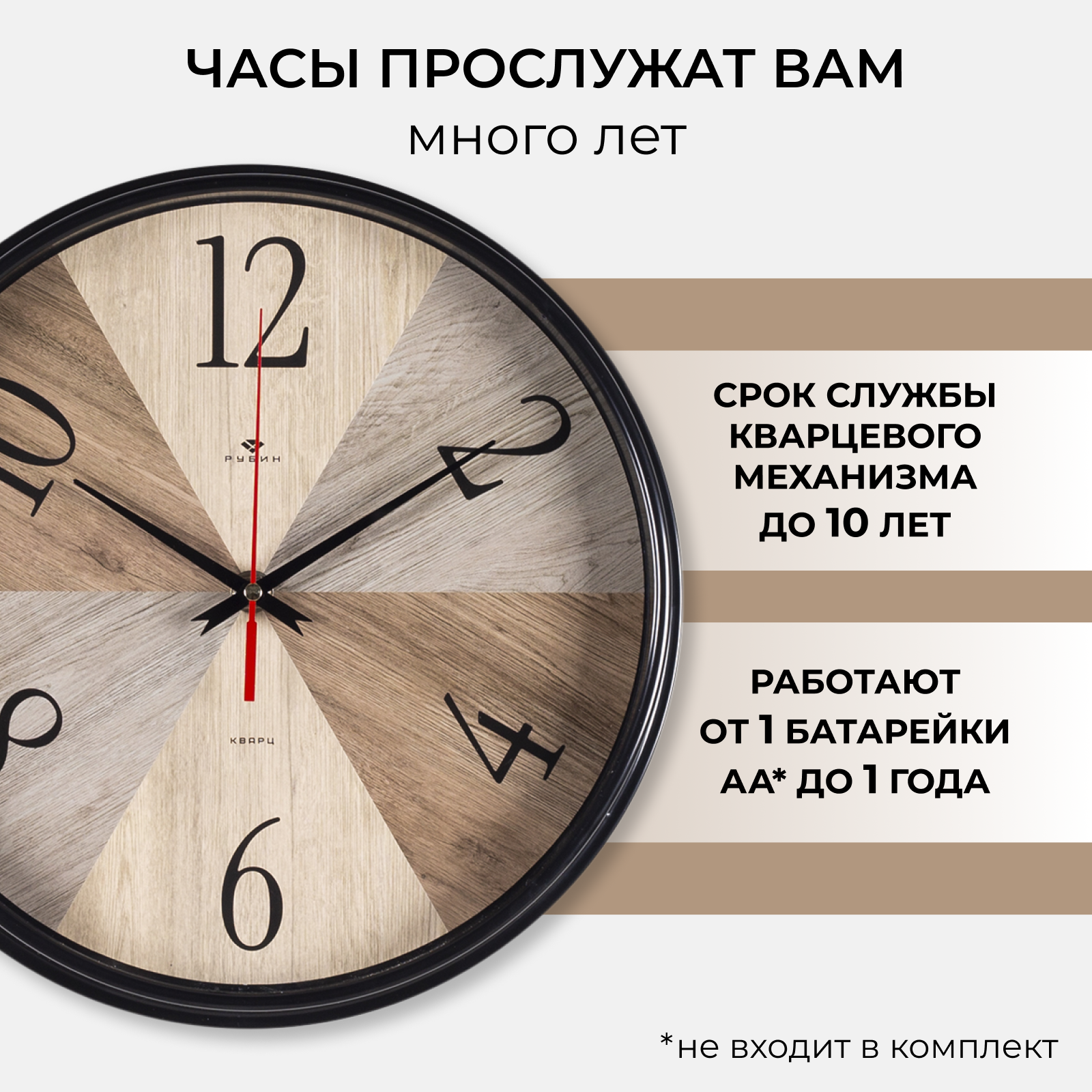 Настенные часы Рубин 2832-002, кварцевые, материал корпуса пластик, плавный ход