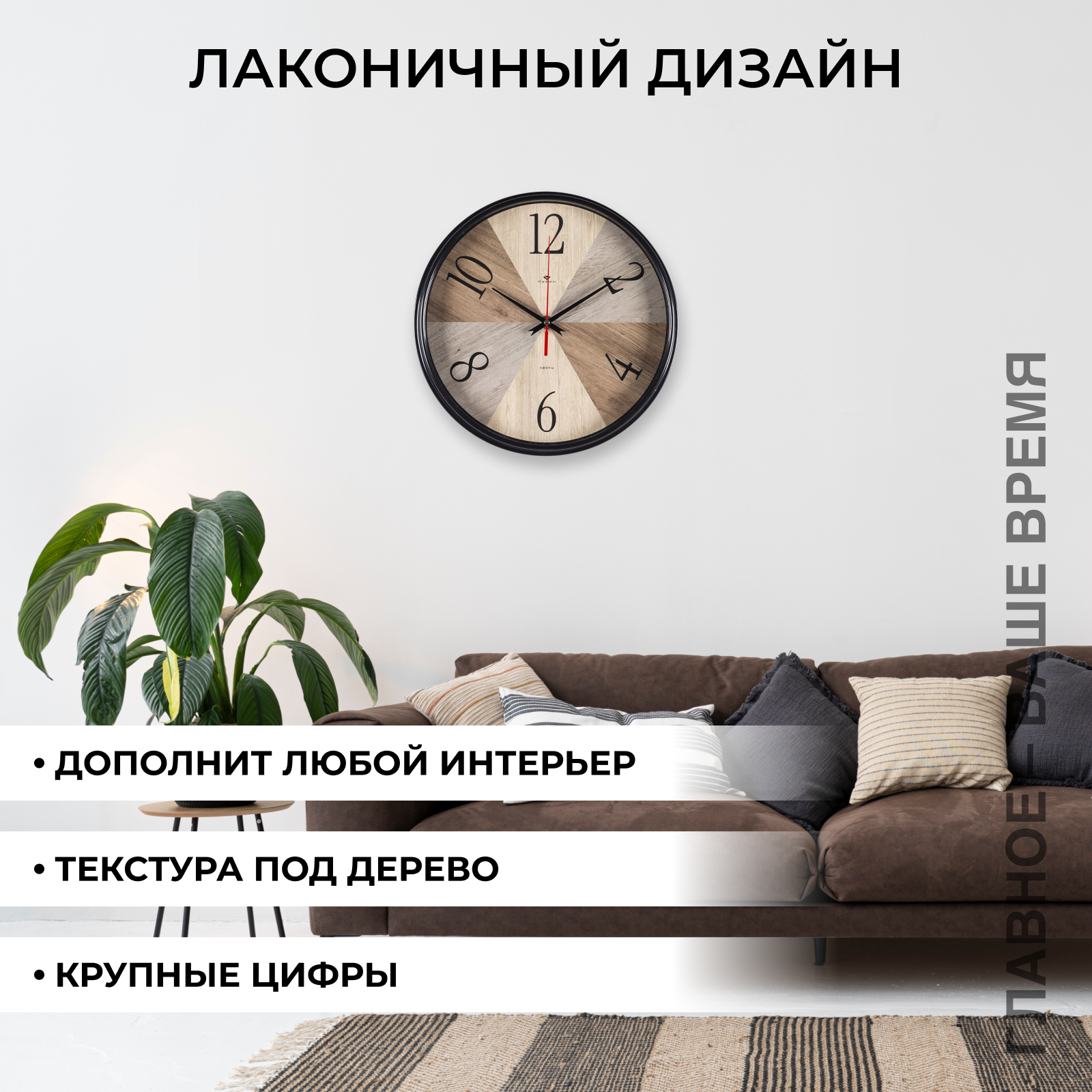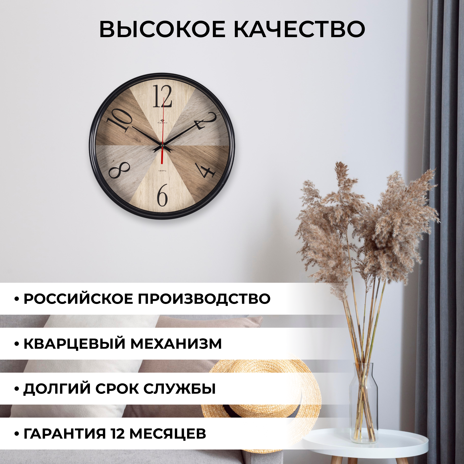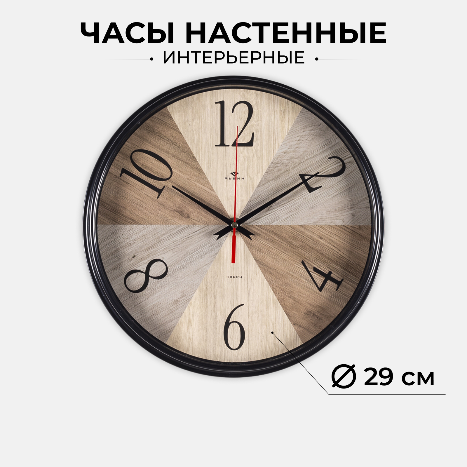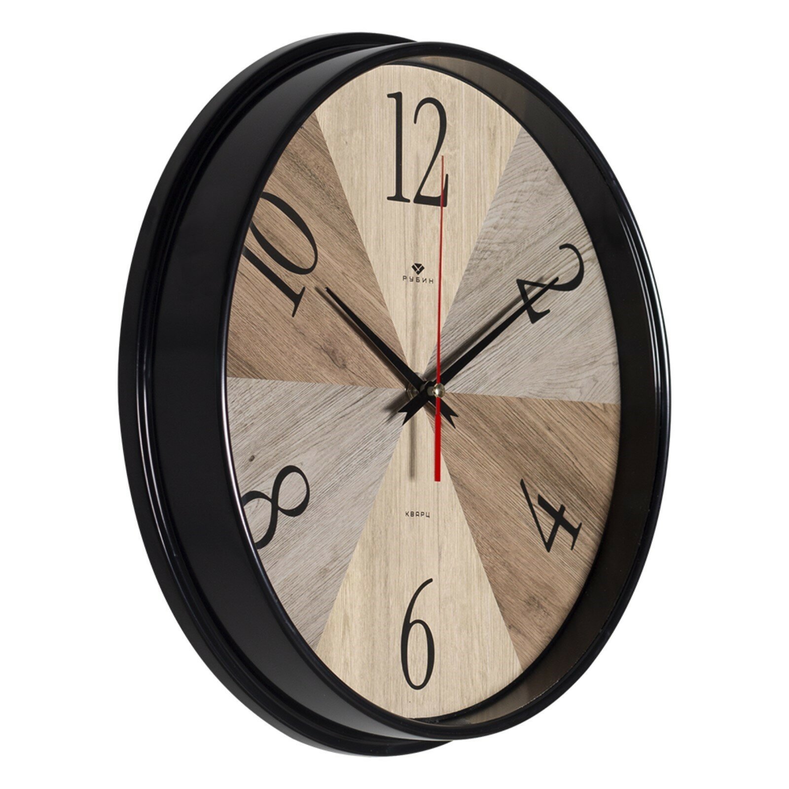 Настенные часы Рубин "Текстура Дерева", бесшумные, кварцевые, круглые, пластик, 29х29 см