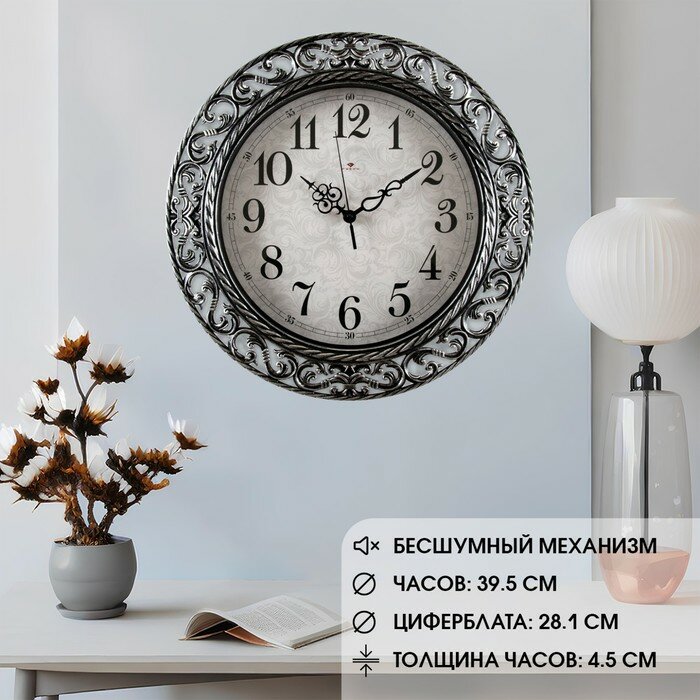 Часы настенные, интерьерные, бесшумные, d-39.5 см