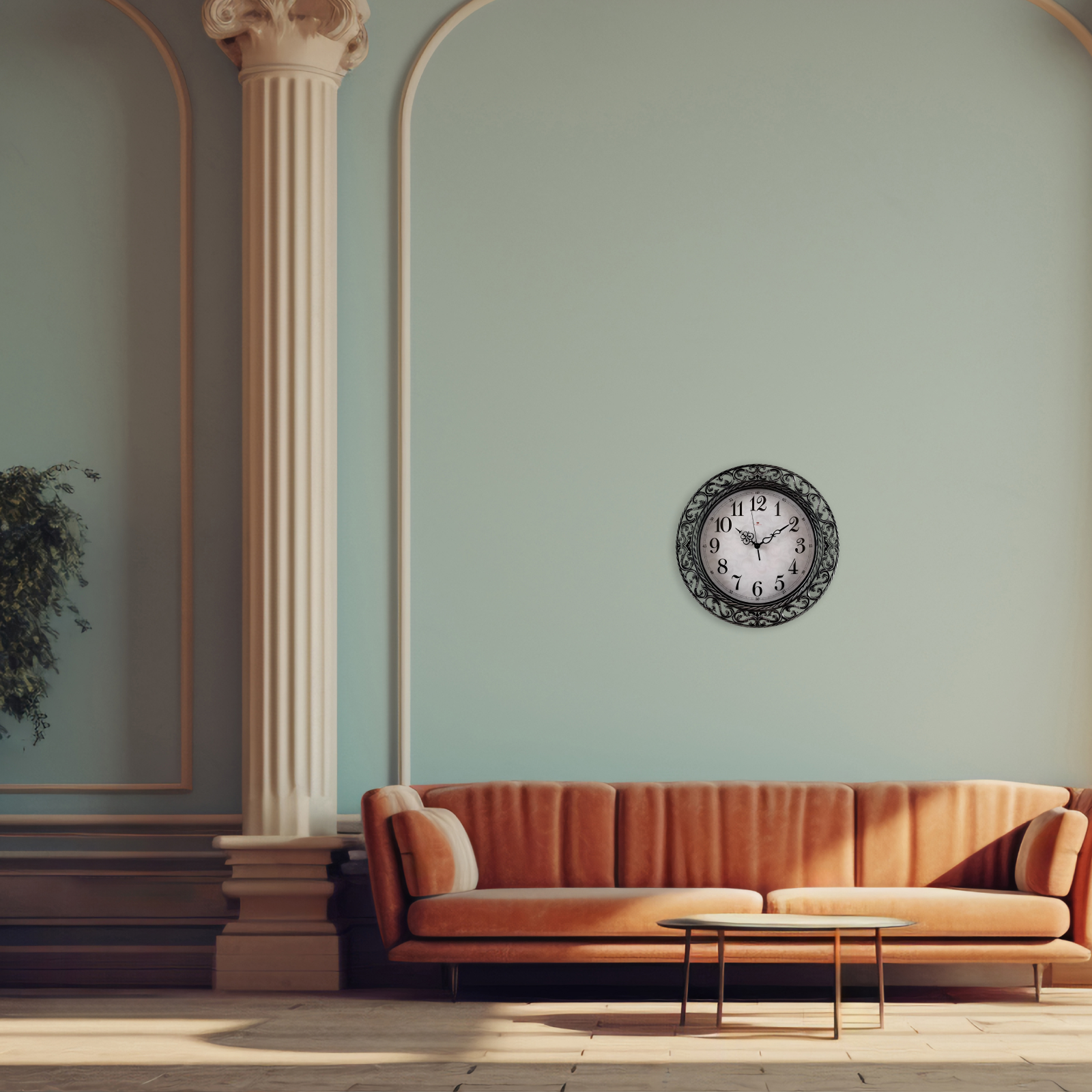 Часы настенные классика круг с узором d-39,5 корпус белый с золотом