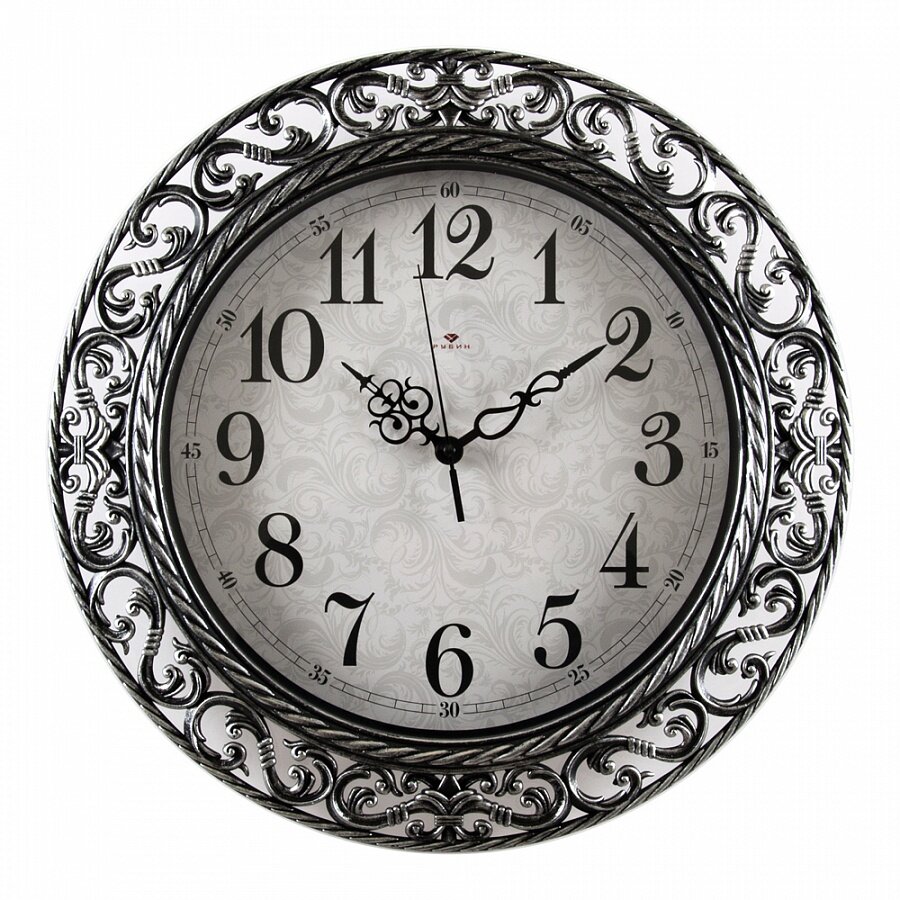 Купить Часы настенные Рубин круг с узором d 39,5 см, корпус черный с серебром "Классика" (4051-105)