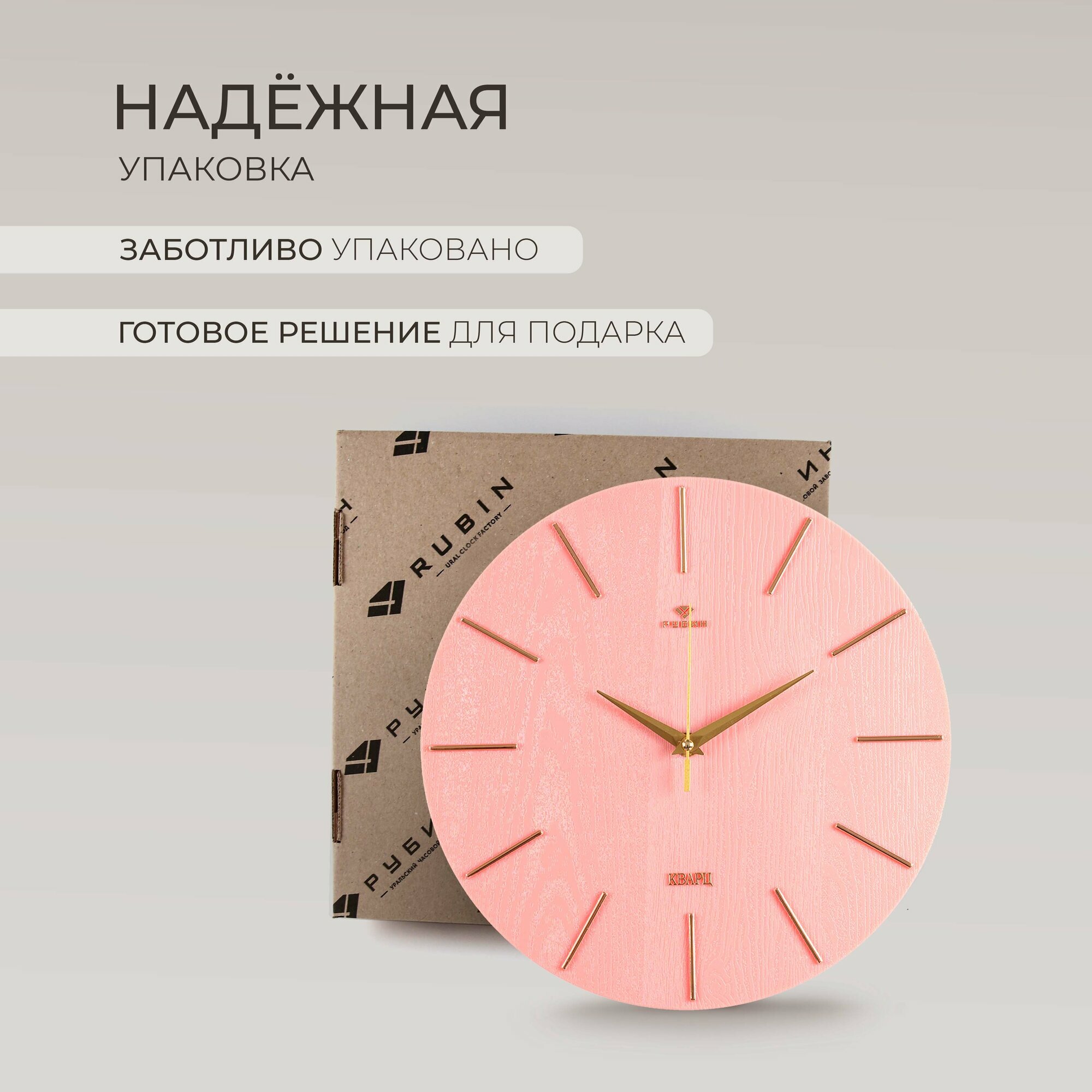 Часы настенные бесшумные интерьерные Рубин 34,5 см светлые кварцевые