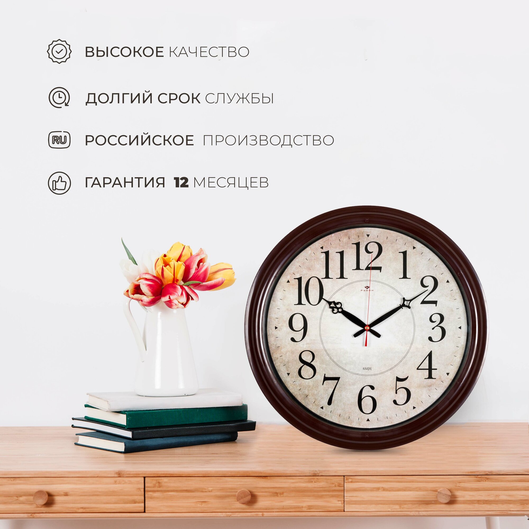 Бесшумные настенные часы Рубин Ретро классика 35 см большие с кварцевым механизмом