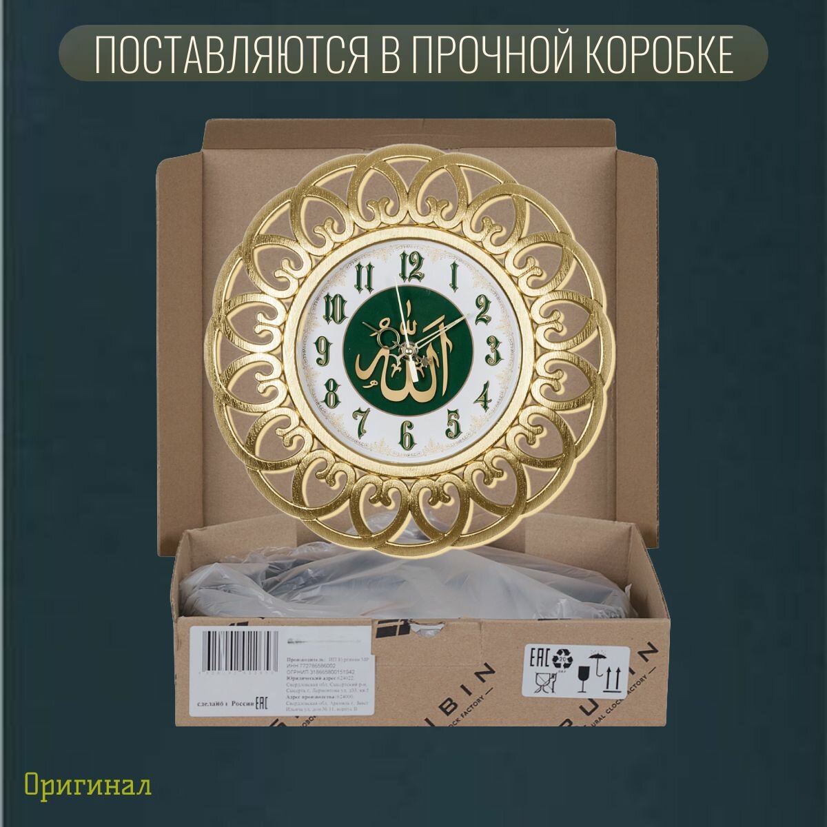 Часы настенные большие Молитва 39см , часы мусульманские настенные Рубин бесшумные открытая стрелка
