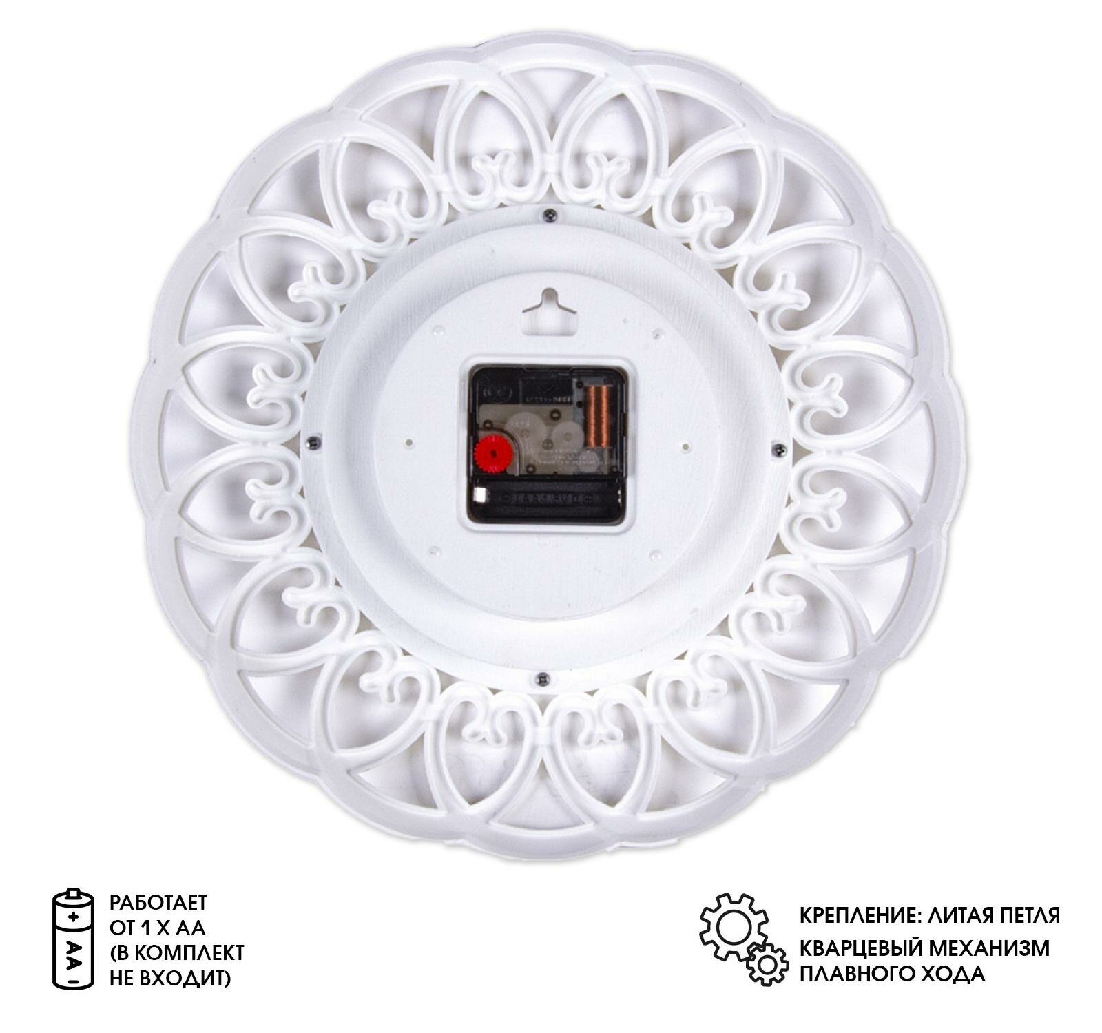 Часы настенные ажурные Рубин, 38см большие кварцевые, белые с плавным ходом