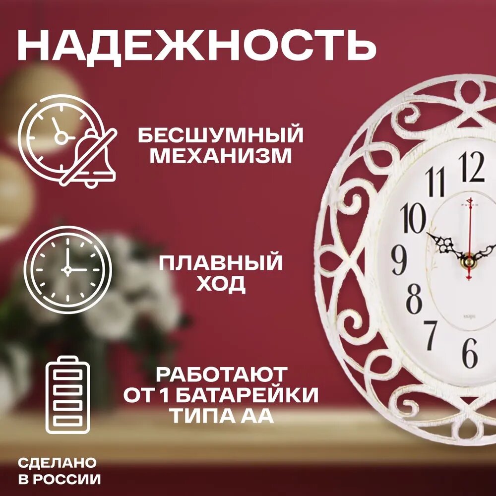 Часы настенные КРУЖЕВА большие, бесшумные, интерьерные для дома 4126-002 Рубин Россия