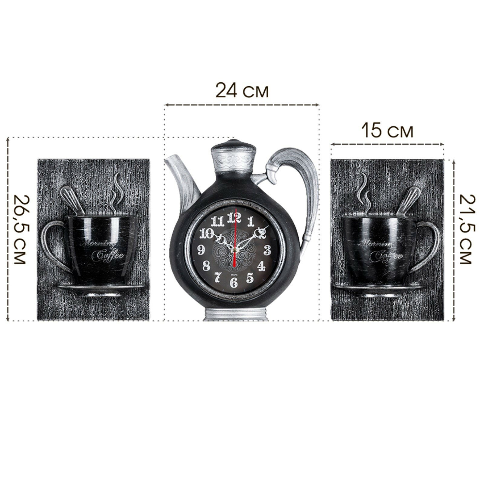Купить Часы настенные 2622+2-004 чайник 26,5х24см+2 чашки, корпус черный с серебром "Узор" "Рубин"