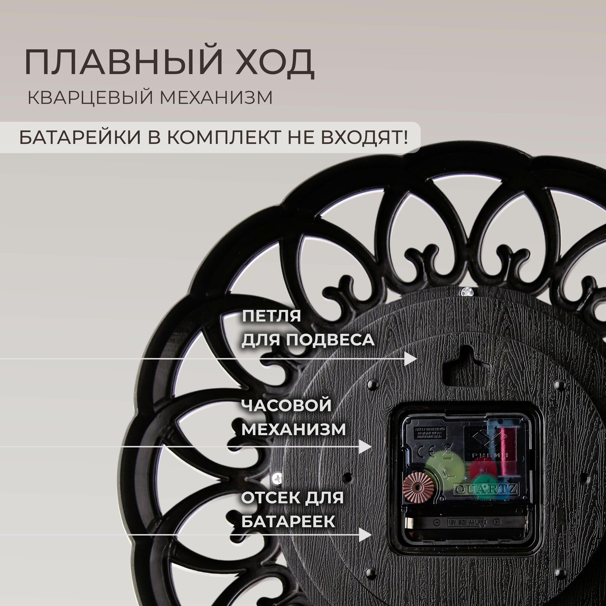 Часы настенные КРУЖЕВА большие, бесшумные, интерьерные для дома 4126-002 Рубин Россия