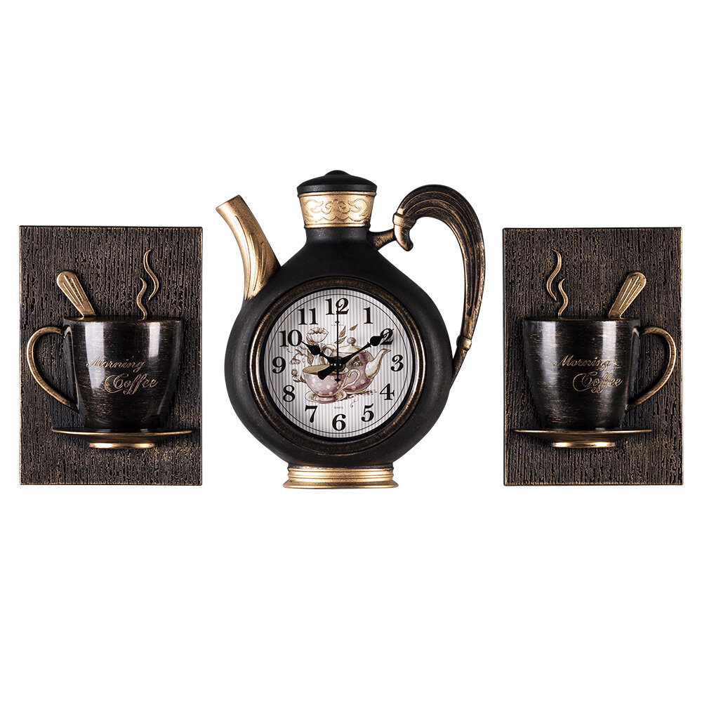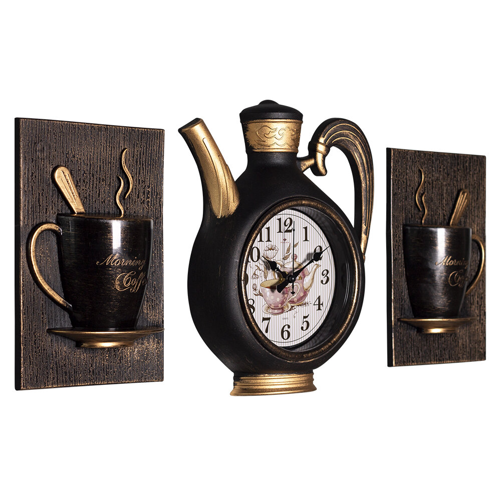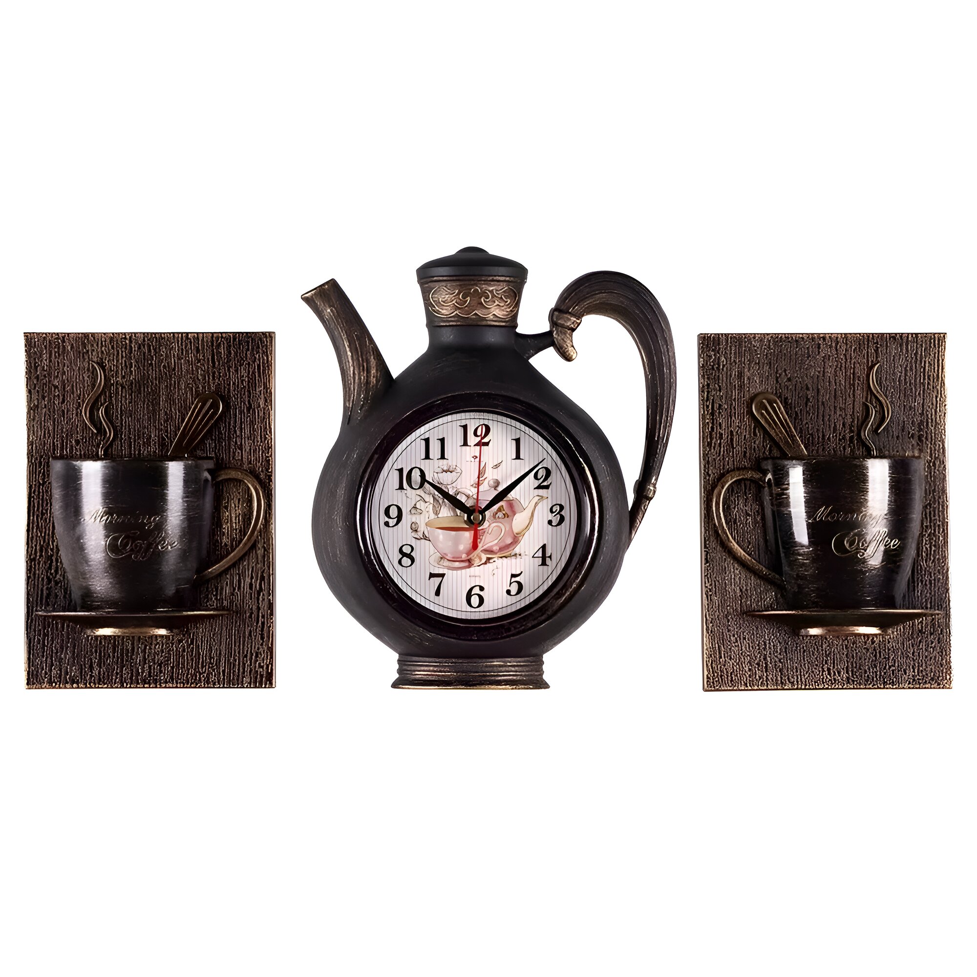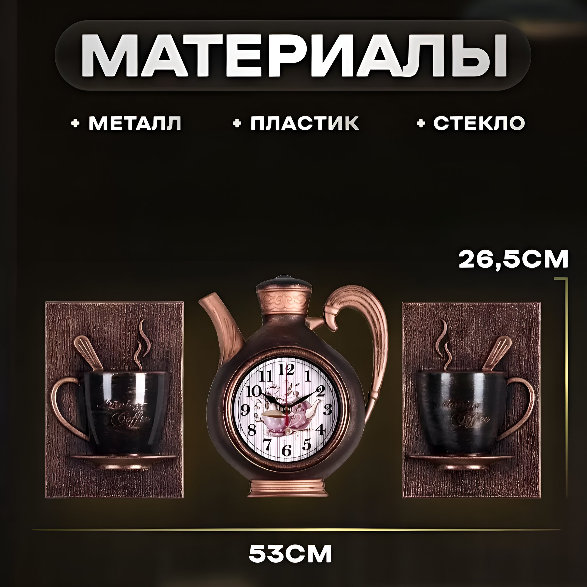 Купить Часы настенные чайник 26,5х24см+2 чашки, корпус черный с медью "Joy" "Рубин"