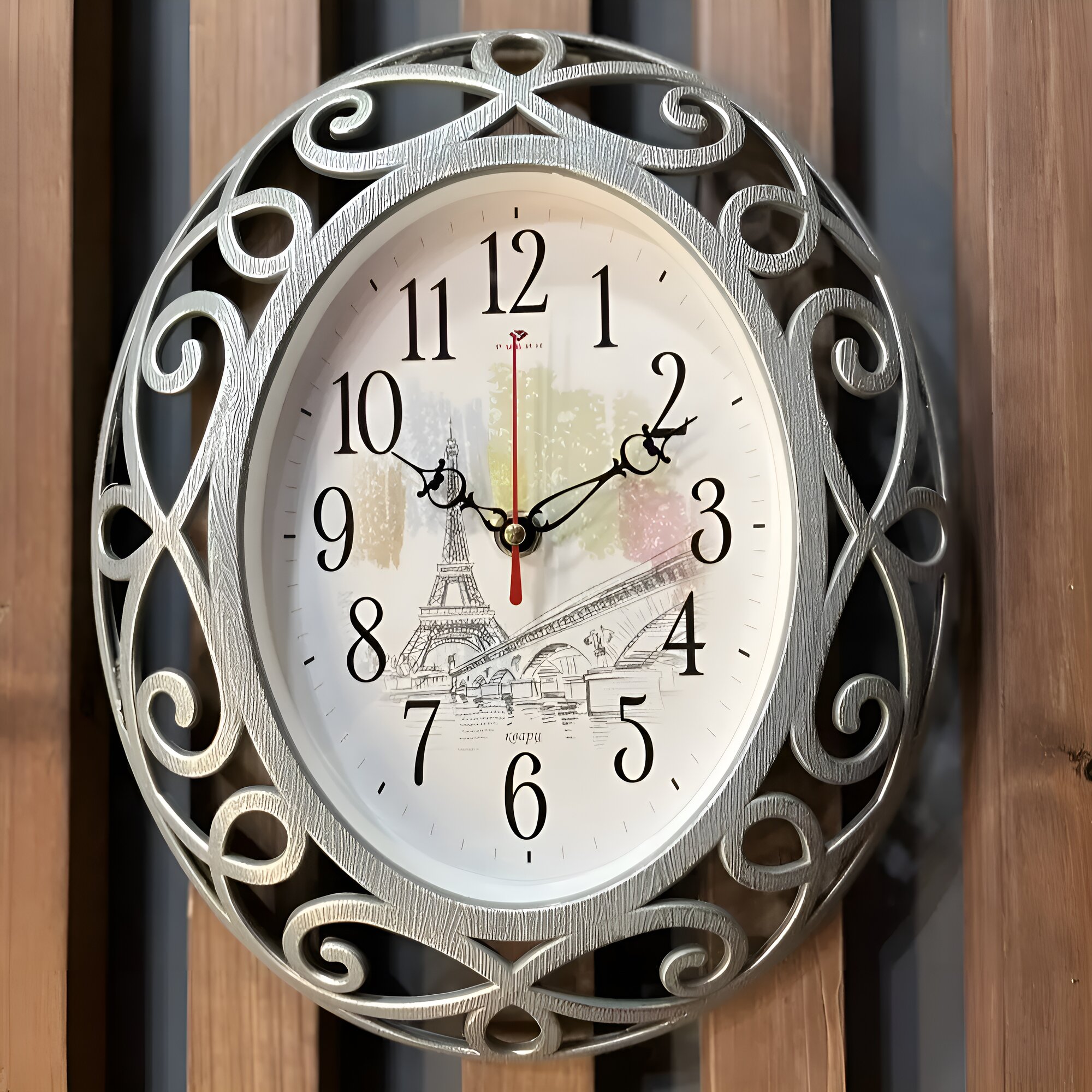 Купить Часы Рубин "Париж", овальные, 26х31см, бесшумные, кварцевые, с секундной стрелкой, цвет серебро