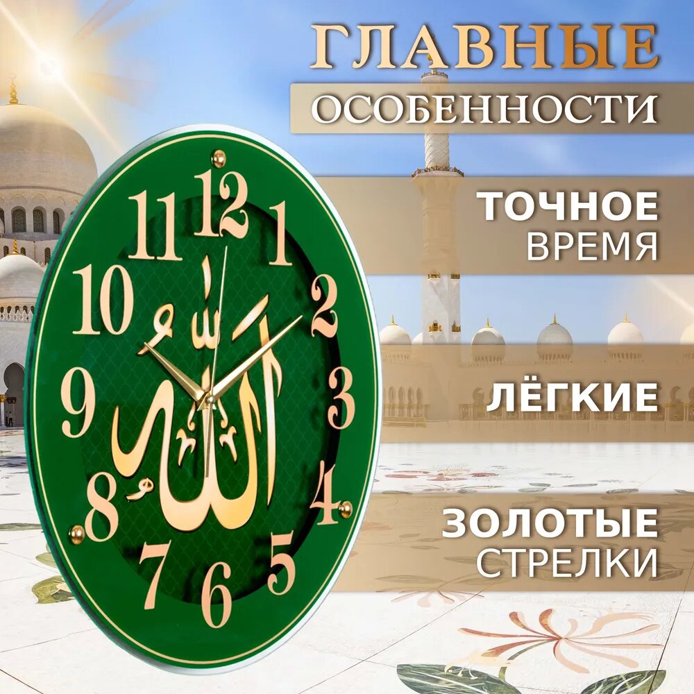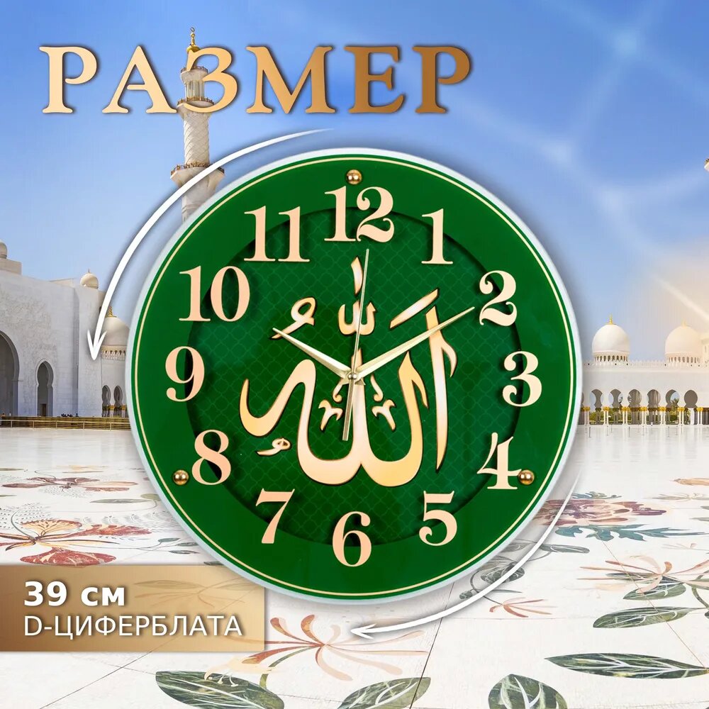 Часы настенные большие Молитва 39см , часы мусульманские настенные Рубин бесшумные открытая стрелка