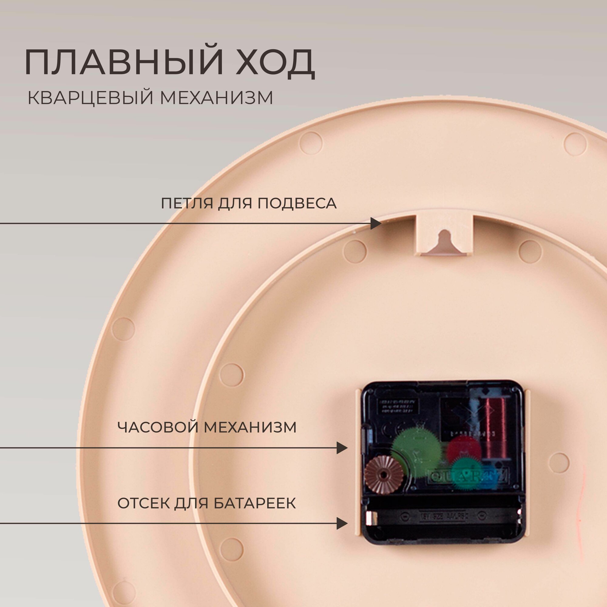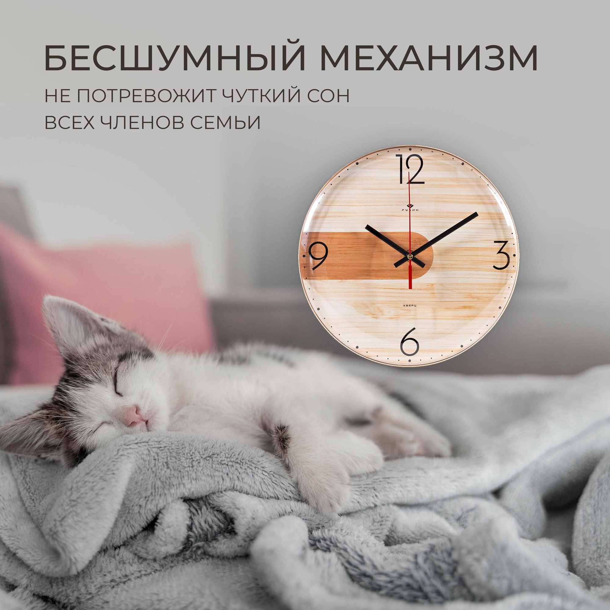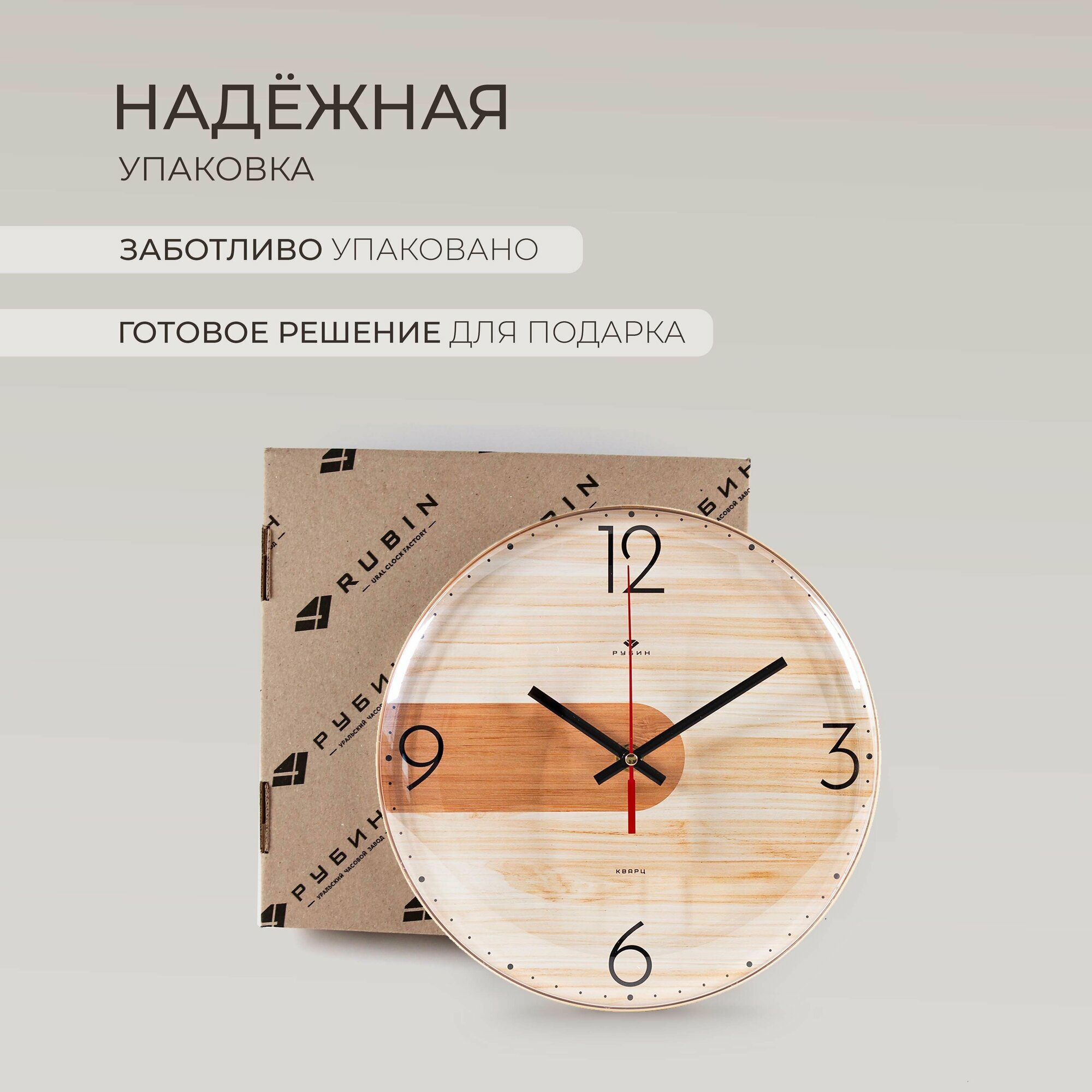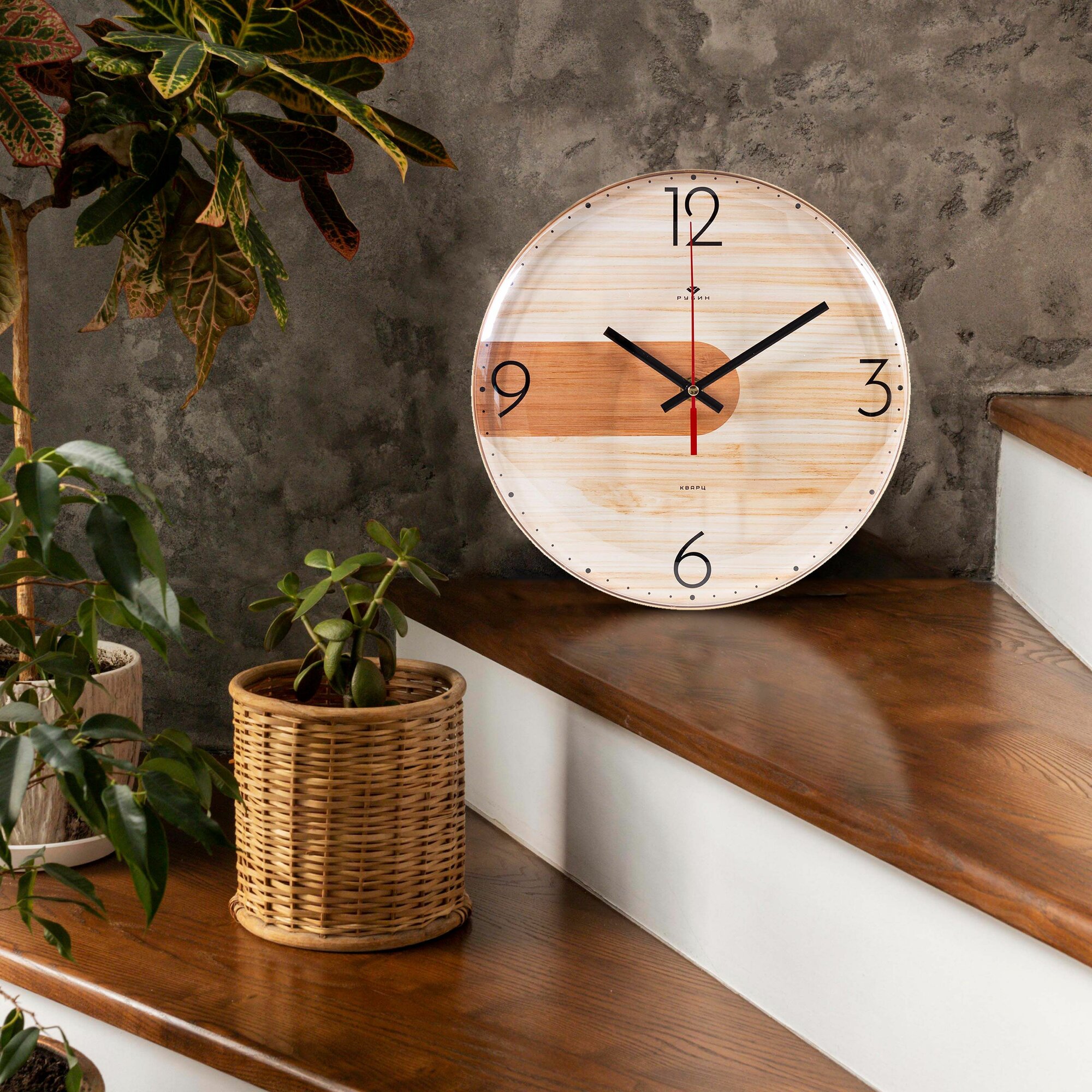 Часы настенные интерьерные "Рубин" круг d=25см, основание бежевое "Текстура дерева", кварцевый механизм