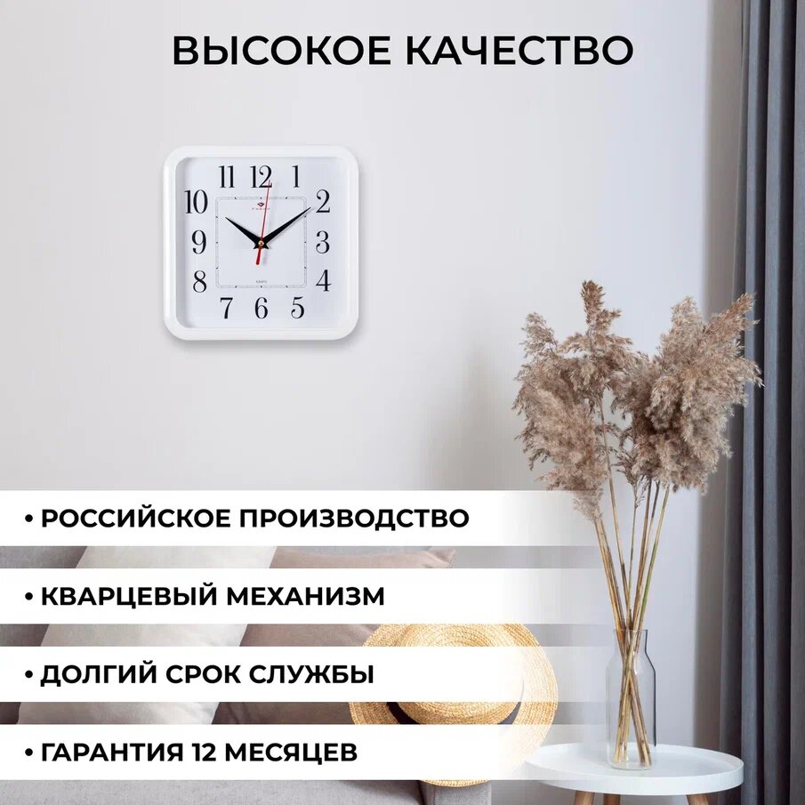 Часы настенные квадрат 22х22см, корпус белый "Классика" интересное: