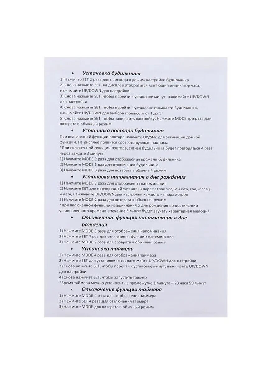 | Особенности | будильник, подсветка |