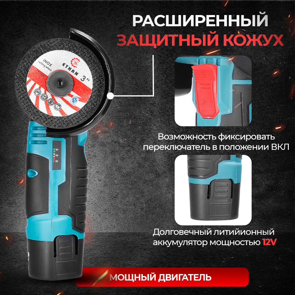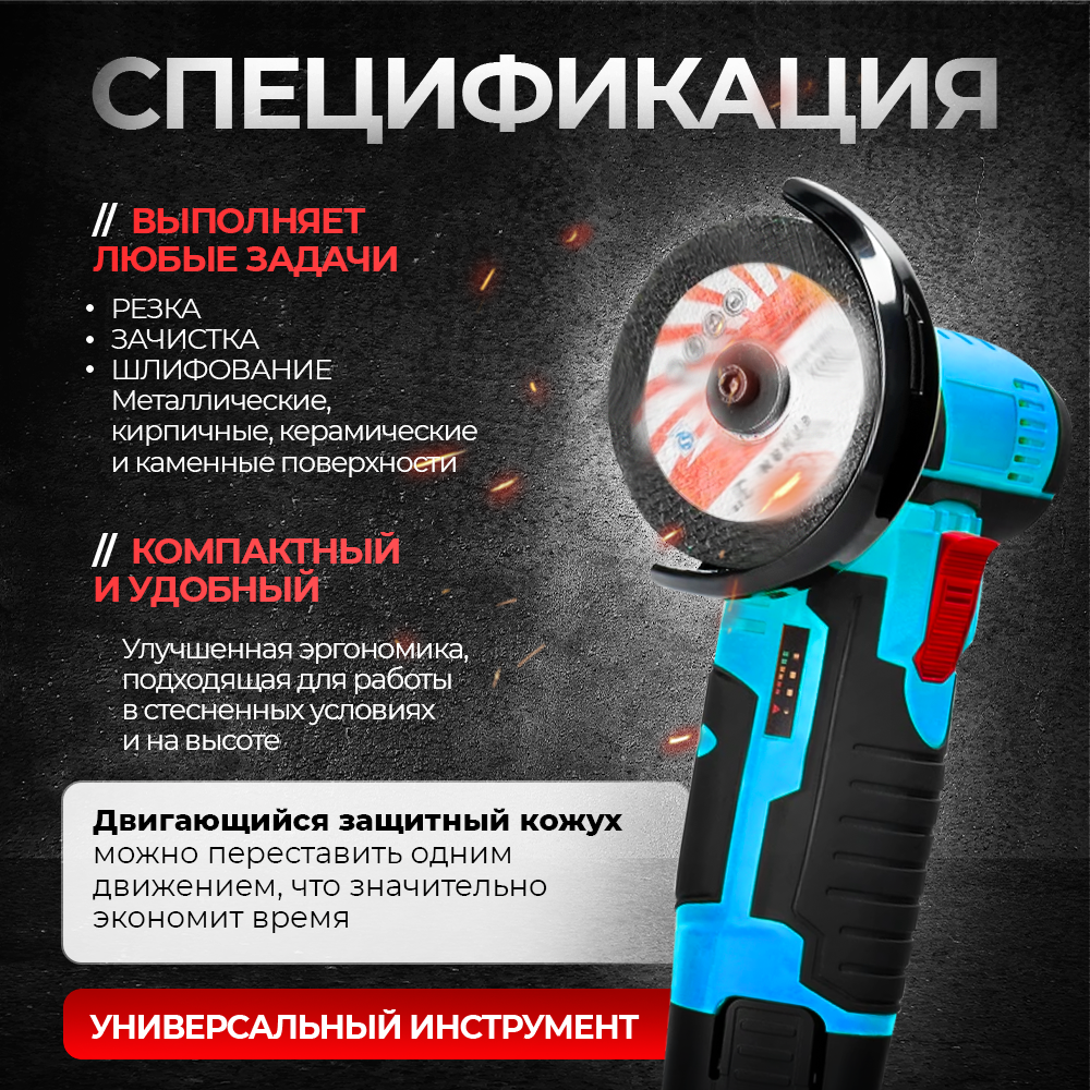 Мини УШМ аккумуляторная, Болгарка 19500об/мин 2 акб, 19500 об/минуту интересное: