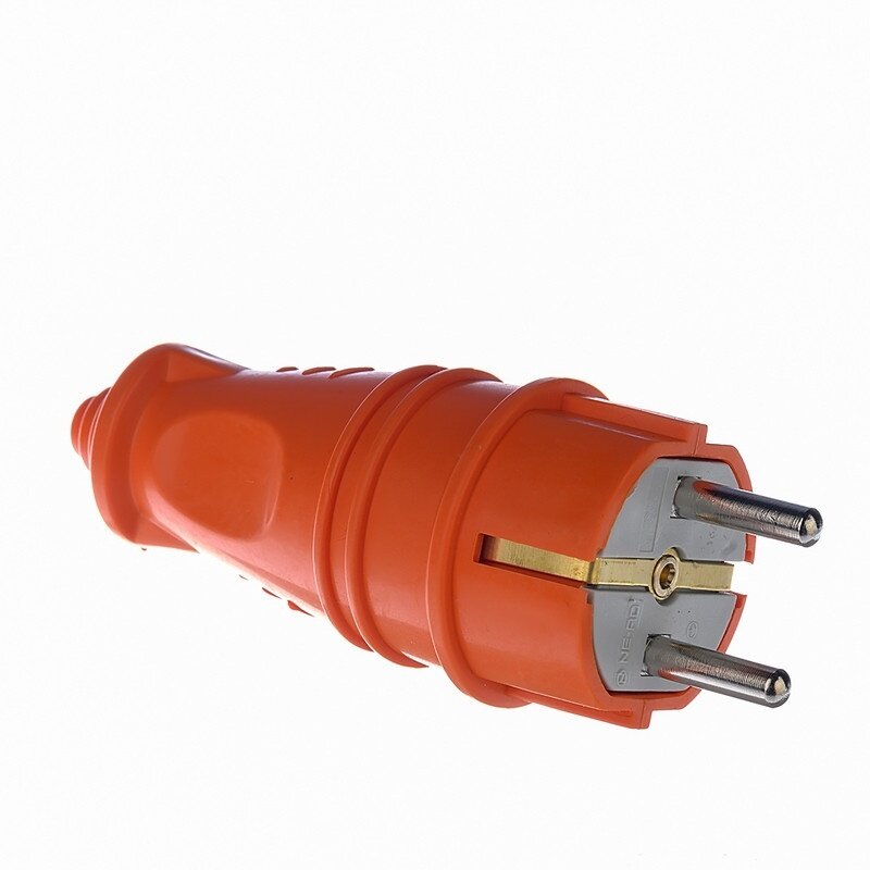 Вилка штепсельная прямая с заземлением, 2P+E евро (каучук), NE-AD, 16A, 250В, оранжевая