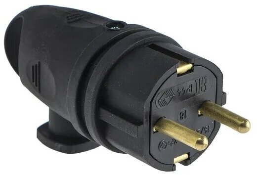 Вилка разборная, каучук, 16 А, 250 В, IP44, с з/к, черная.