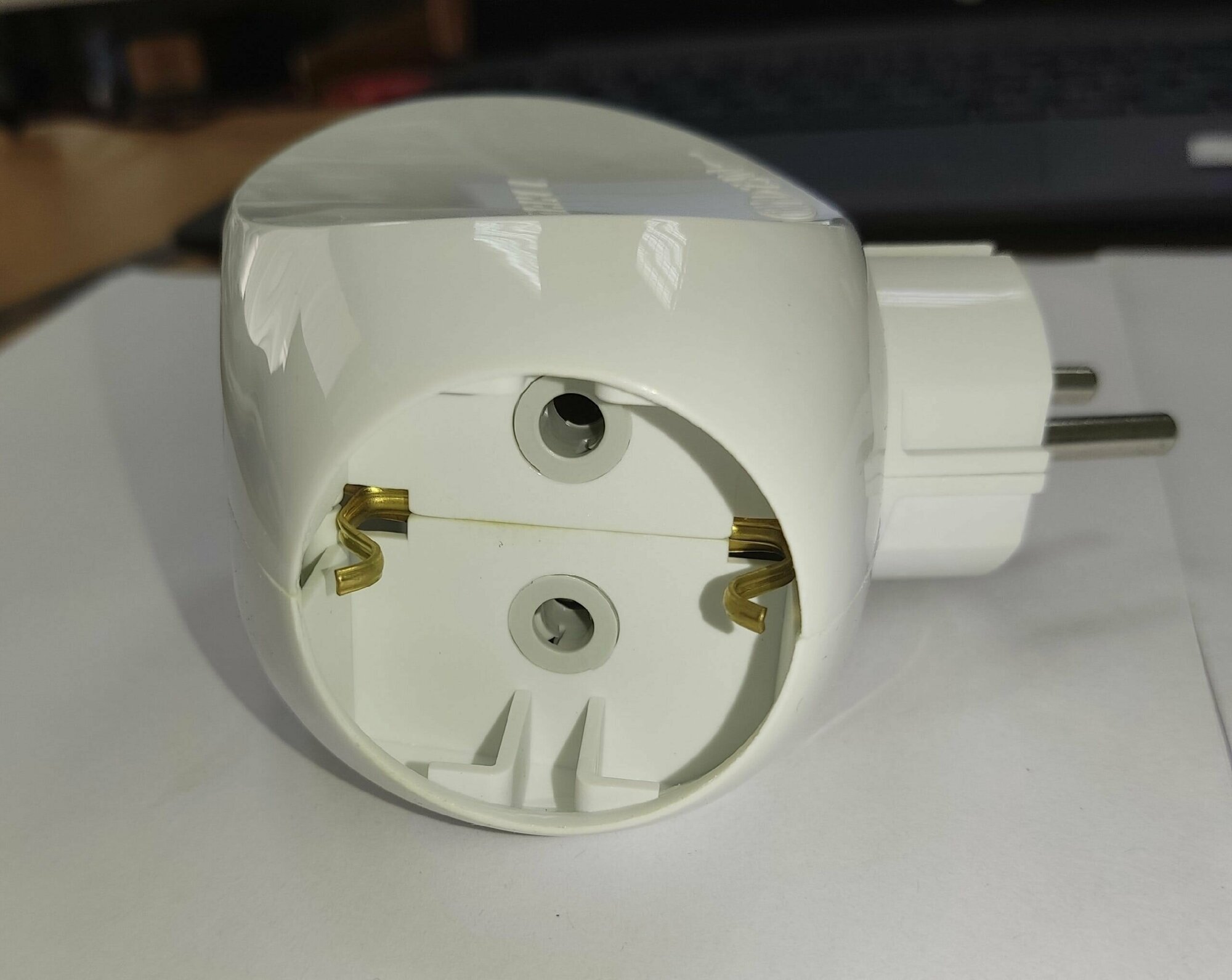 Тройник для розетки электрический с заземлением 16А, белый