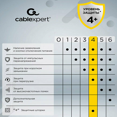 Сетевой фильтр Cablexpert Tower 4 розетки 10А 3xUSB 3.1А 2 метра уровень защиты 2+ черный