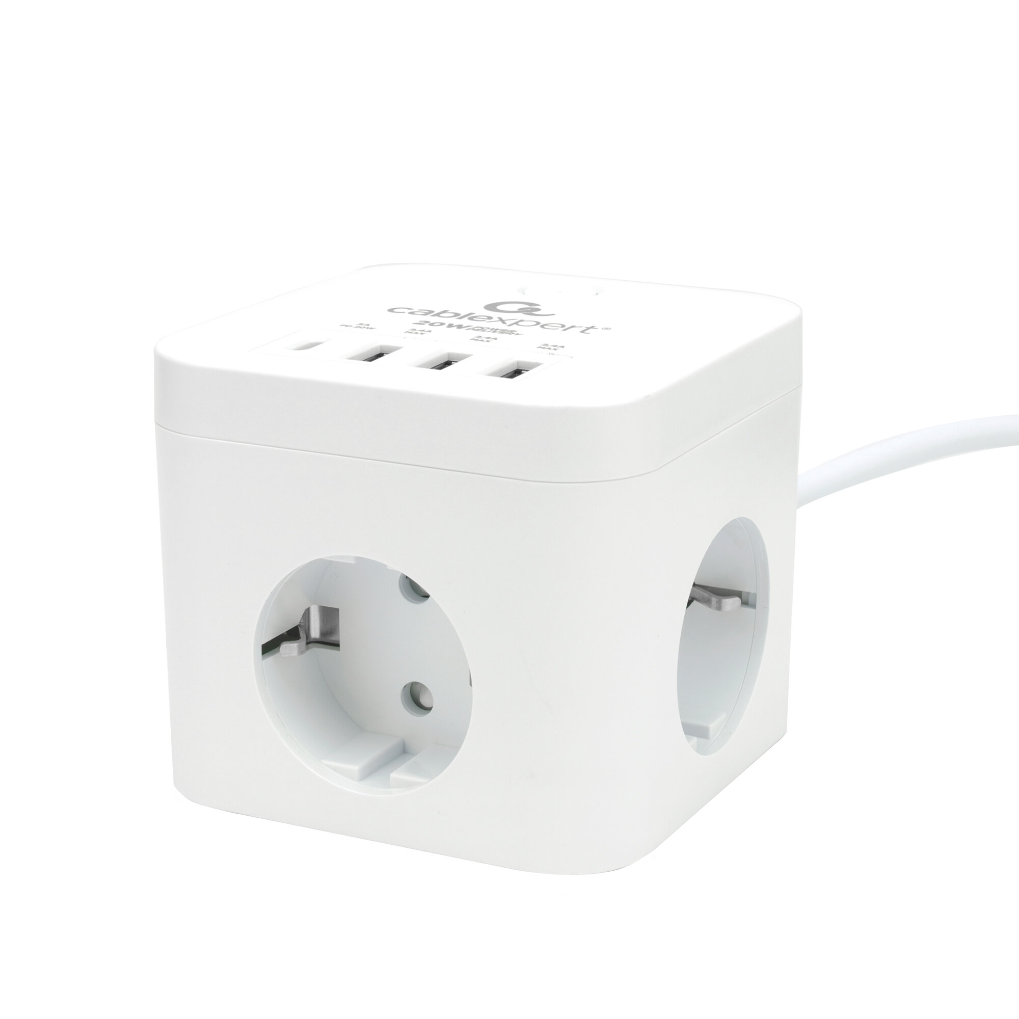 Сетевой фильтр Cablexpert Cube, 3 розетки, 4хUSB, 1.5м, белый, коробка