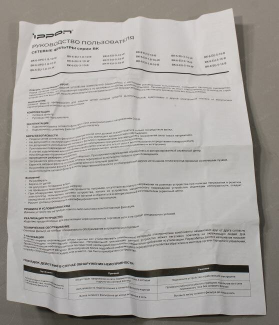 | Тип | сетевой фильтр |