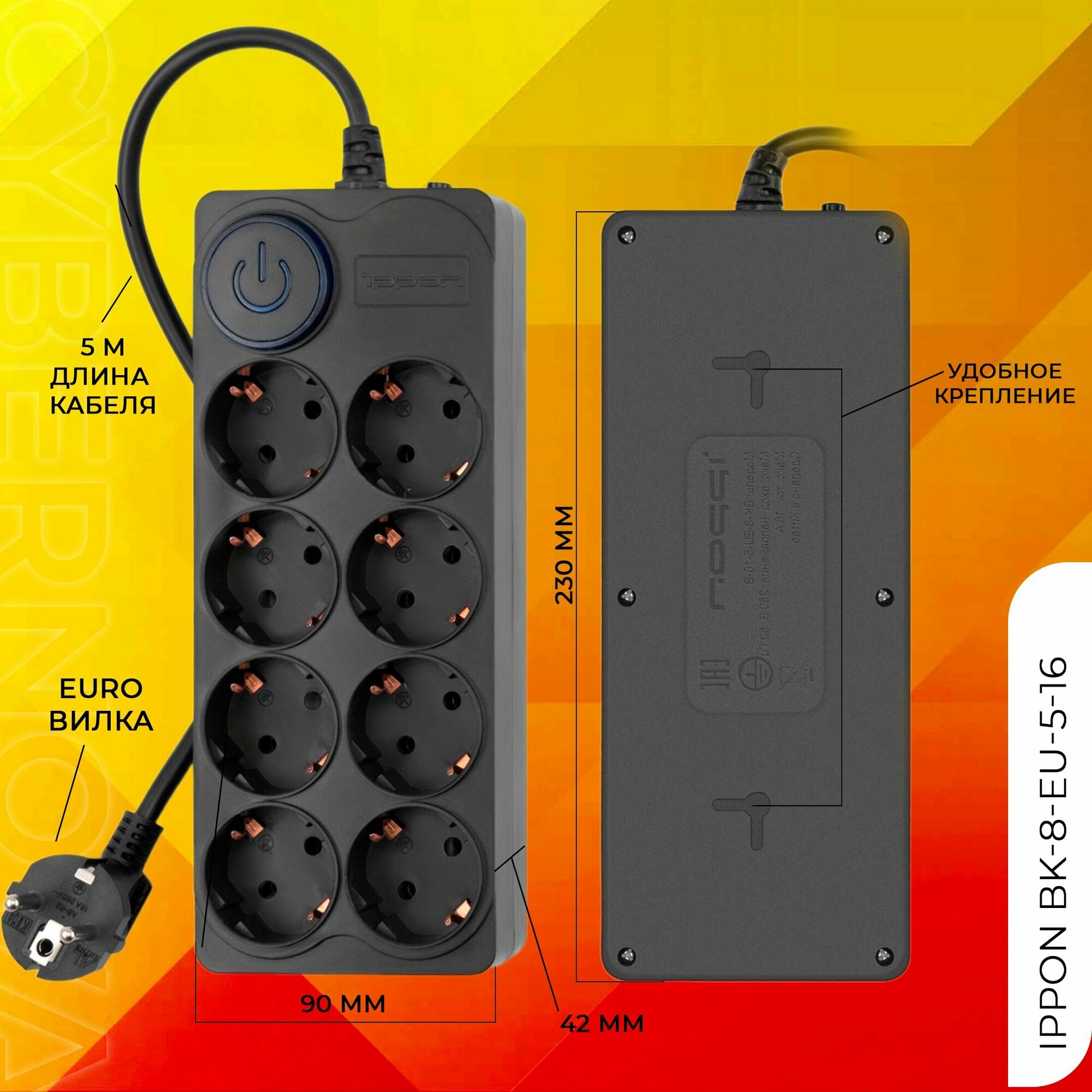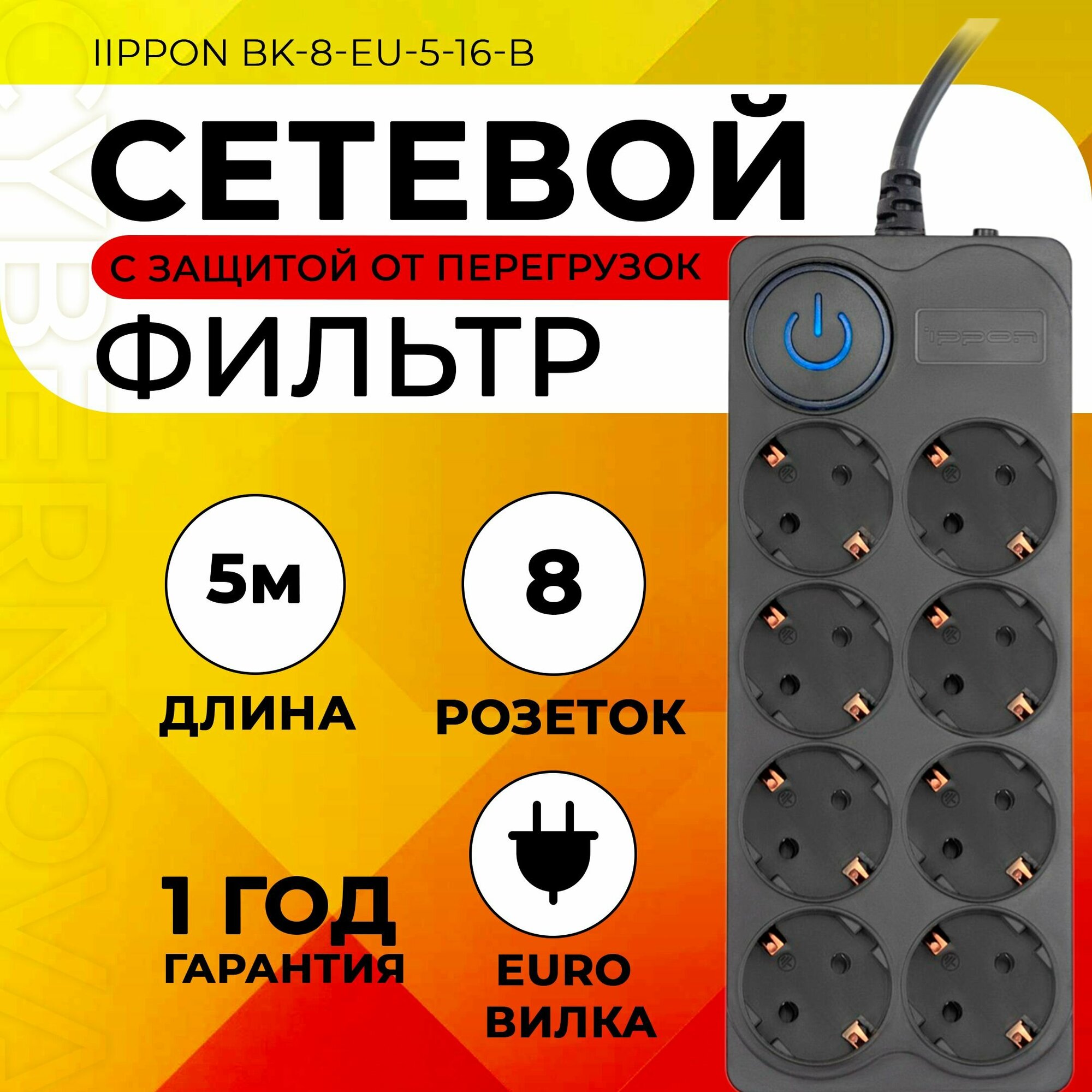 Сетевой фильтр Ippon BK-8-EU-5-16-B черный 5м (8 розеток) интересное: