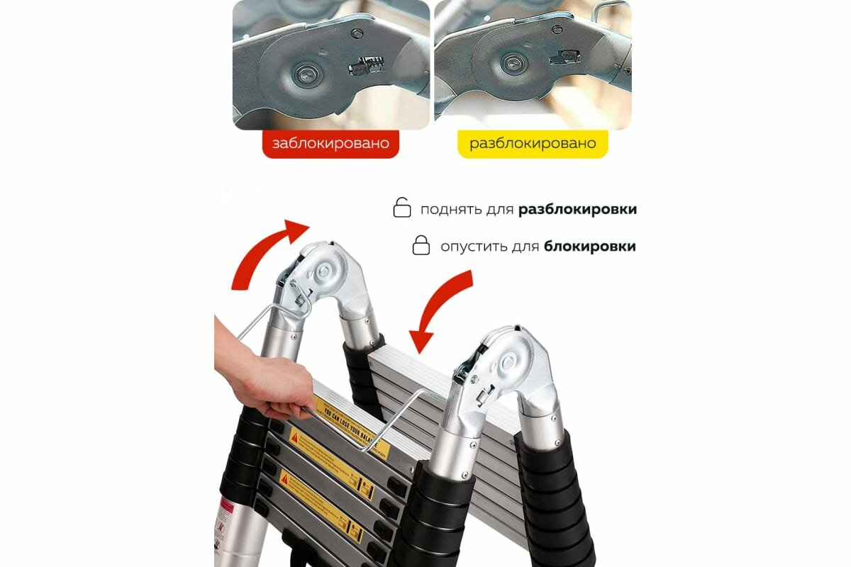 Лестница-стремянка телескопическая алюминиевая двухсекционная (2.9+2.9м,10+10ступенек, max нагрузка 150кг, вес 14.5кг)