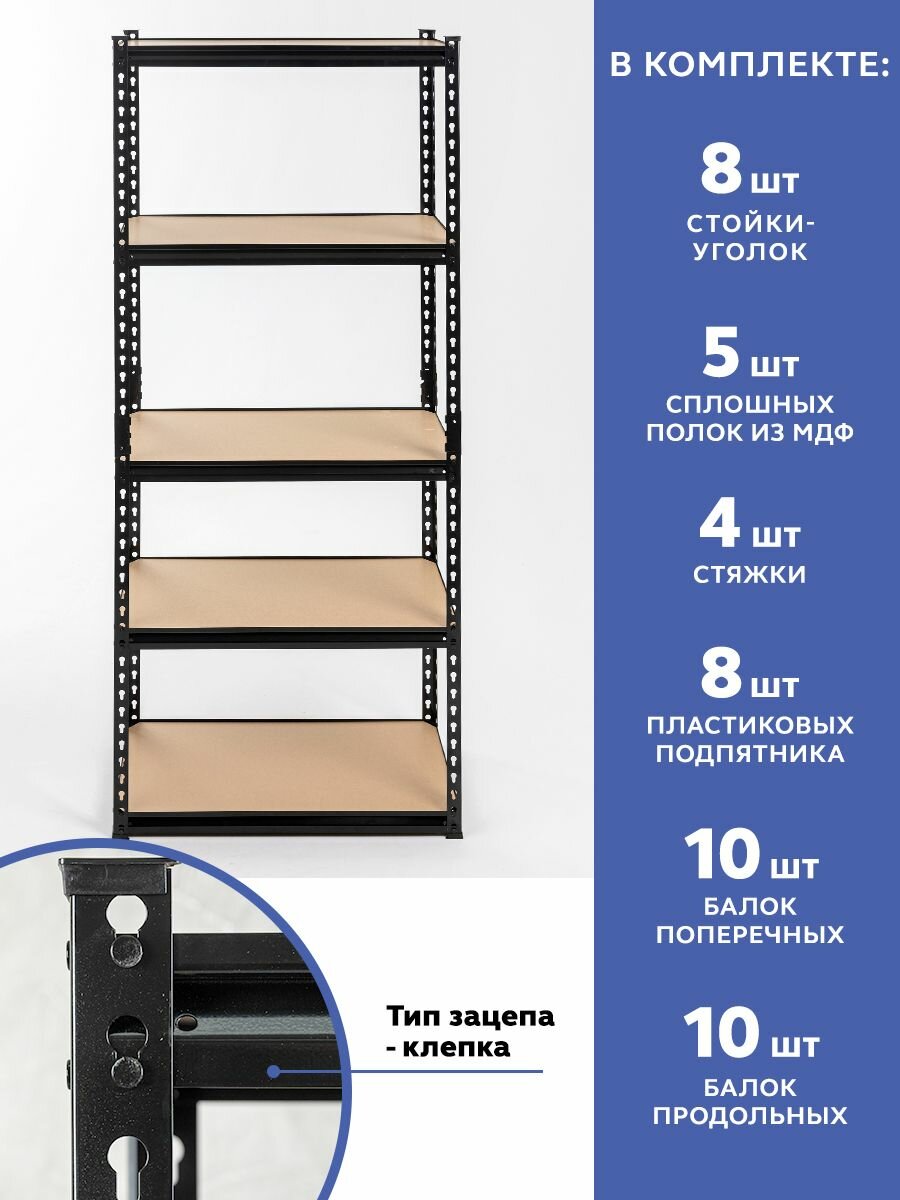 Стеллаж металлический безболтовой GASTRORAG GR-003-2, 5 полок МДФ, размеры 180х90х40 см, этажерка для кухни, мебель лофт, система хранения для дома, дачи и гаража
