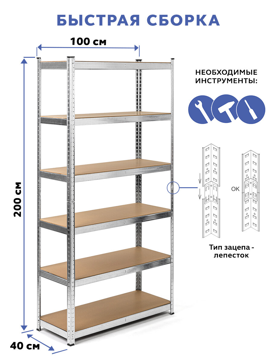 СохранитьСтеллаж металлический 6 полок безболтовой 200х100х40 см интересное: