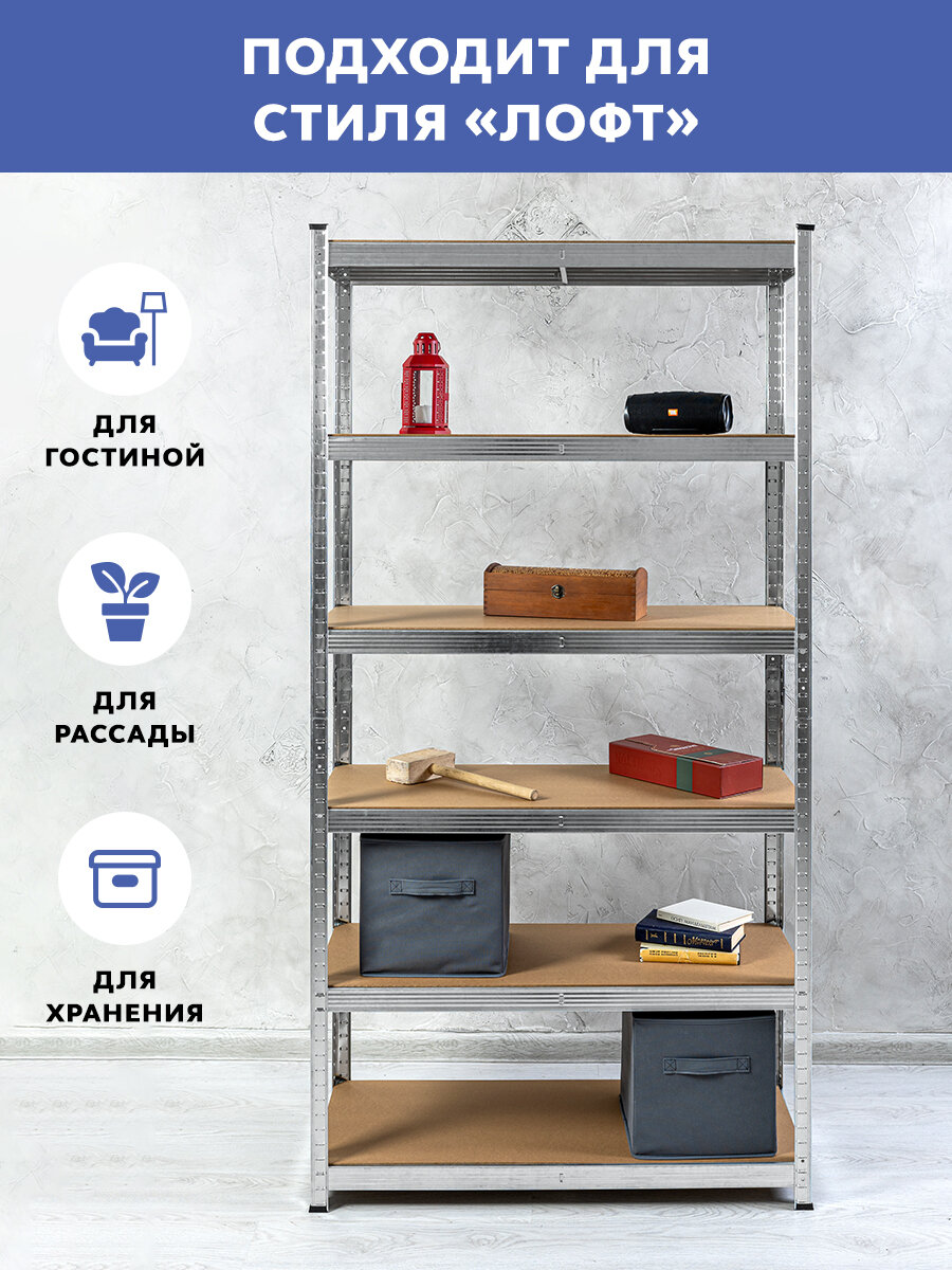 Стеллаж металлический безболтовой GASTRORAG GR-003-6, 5 полок МДФ, размеры 180х90х40 см, этажерка для кухни, мебель лофт, система хранения для дома, дачи и гаража