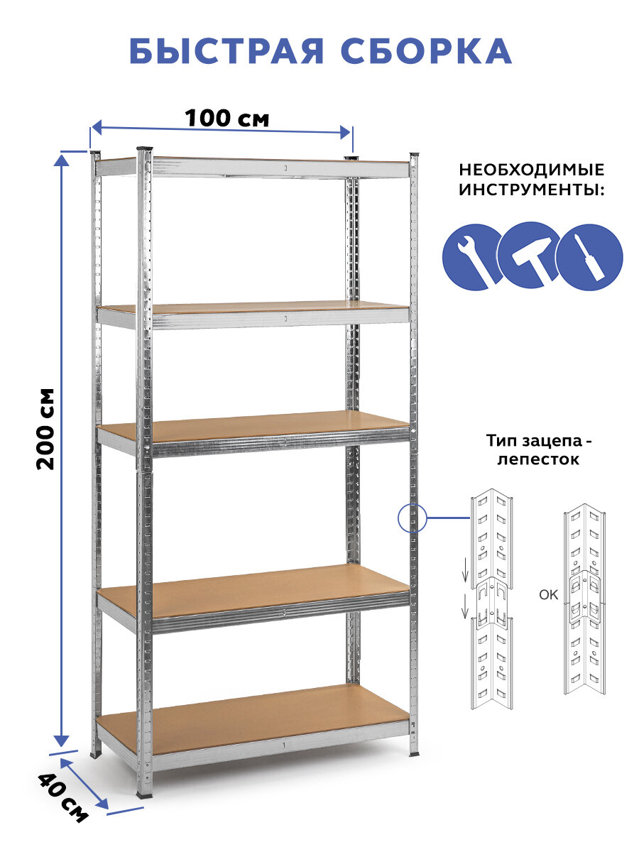 СохранитьСтеллаж металлический 5 полок безболтовой 200х100х40 см интересное: