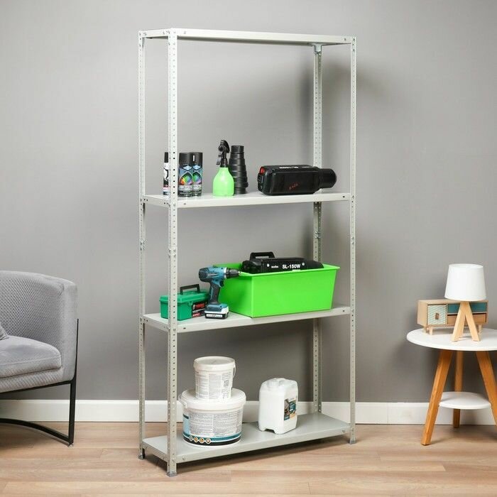 Стеллаж металлический 4 полки Практик LES 15KD 145x75x30 см цвет серый нагрузка на полку 30 кг