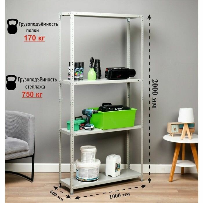 Стеллаж Практик MS 200KD 1950*1000*500мм, 4 полки, серый, комплект