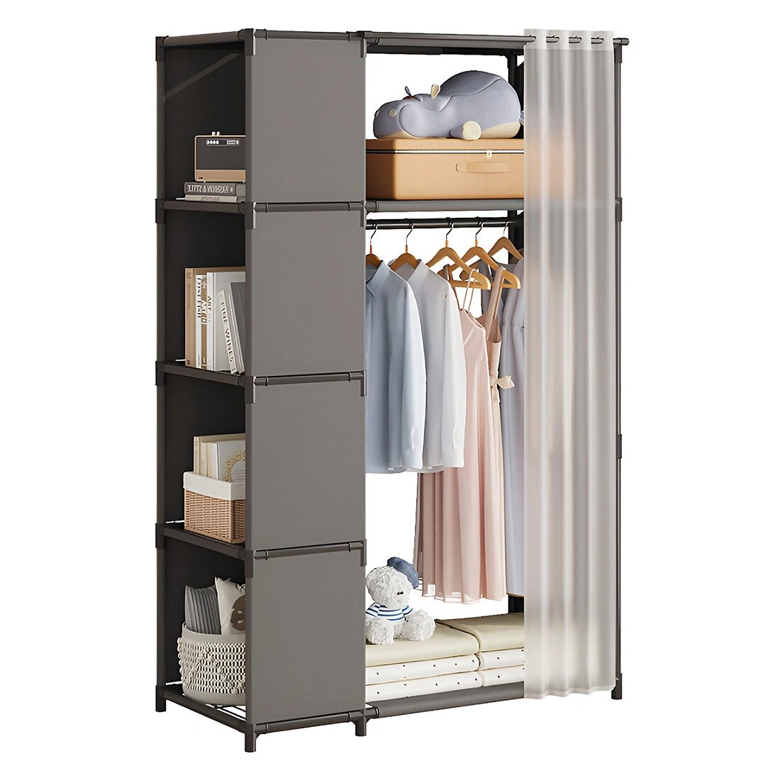 Вешалка напольная Ridberg Black, с закрытыми полками и шторкой, черная, нагрузка до 40кг