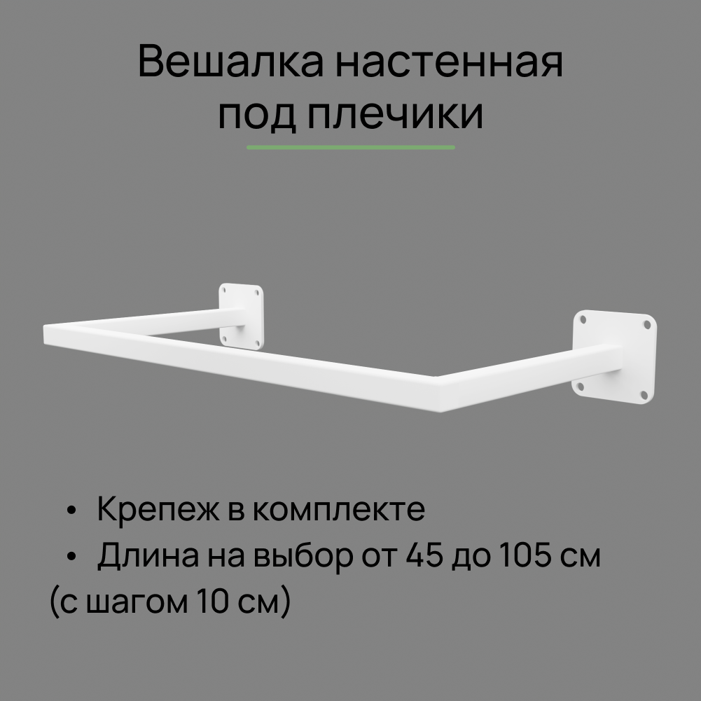 Вешалка настенная для одежды белая сварная (от стены 28 см), длина 55 см