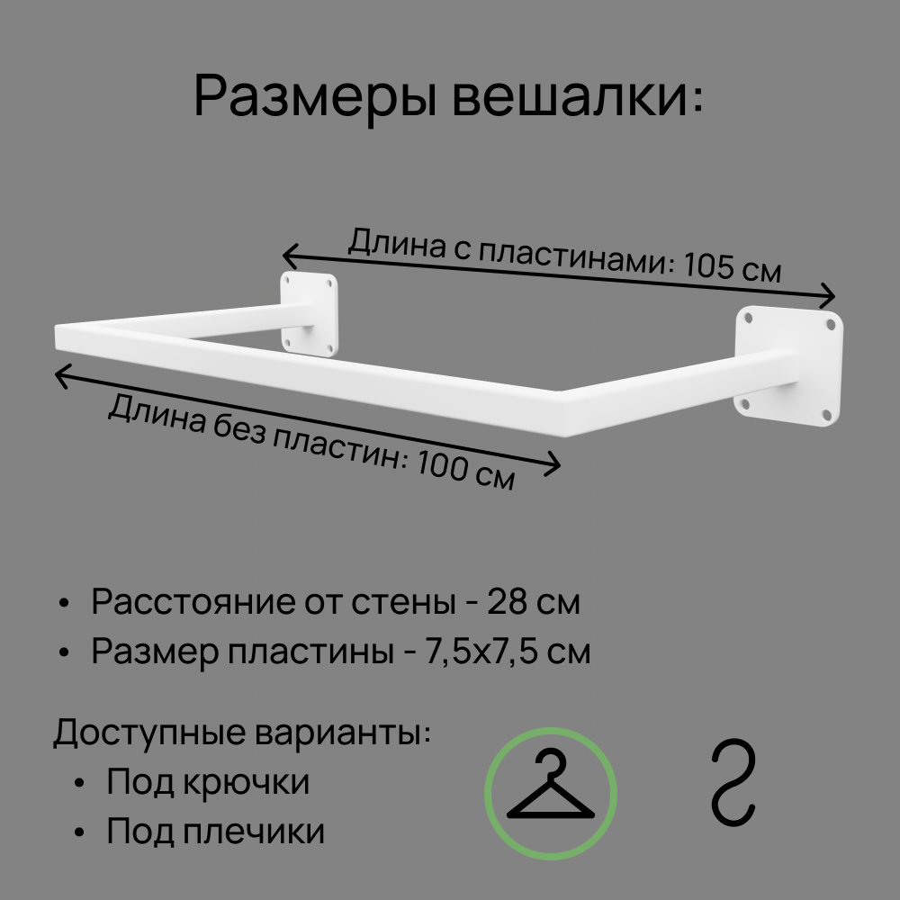 СохранитьВешалка настенная для одежды белая сварная (от стены 28 см) длина 105 см интересное: