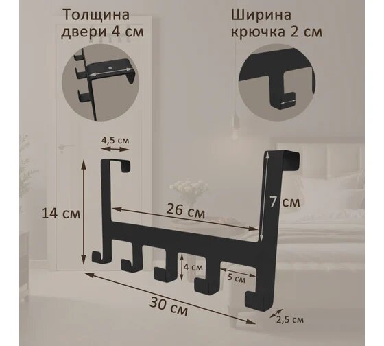 Элимет , Вешалка на дверь навесная Borgo 5, черная, БП-00002982 интересное: