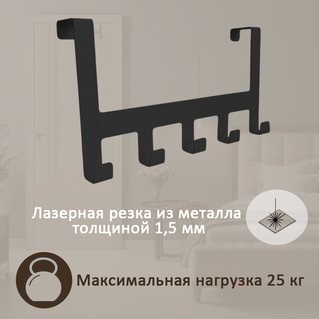 Вешалка на дверь навесная Borgo 5, черная