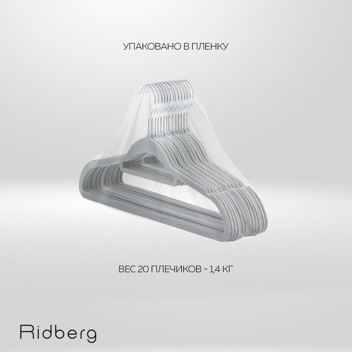 Купить Вешалки плечики для одежды бархатные Ridberg, набор 20 шт (Grey)