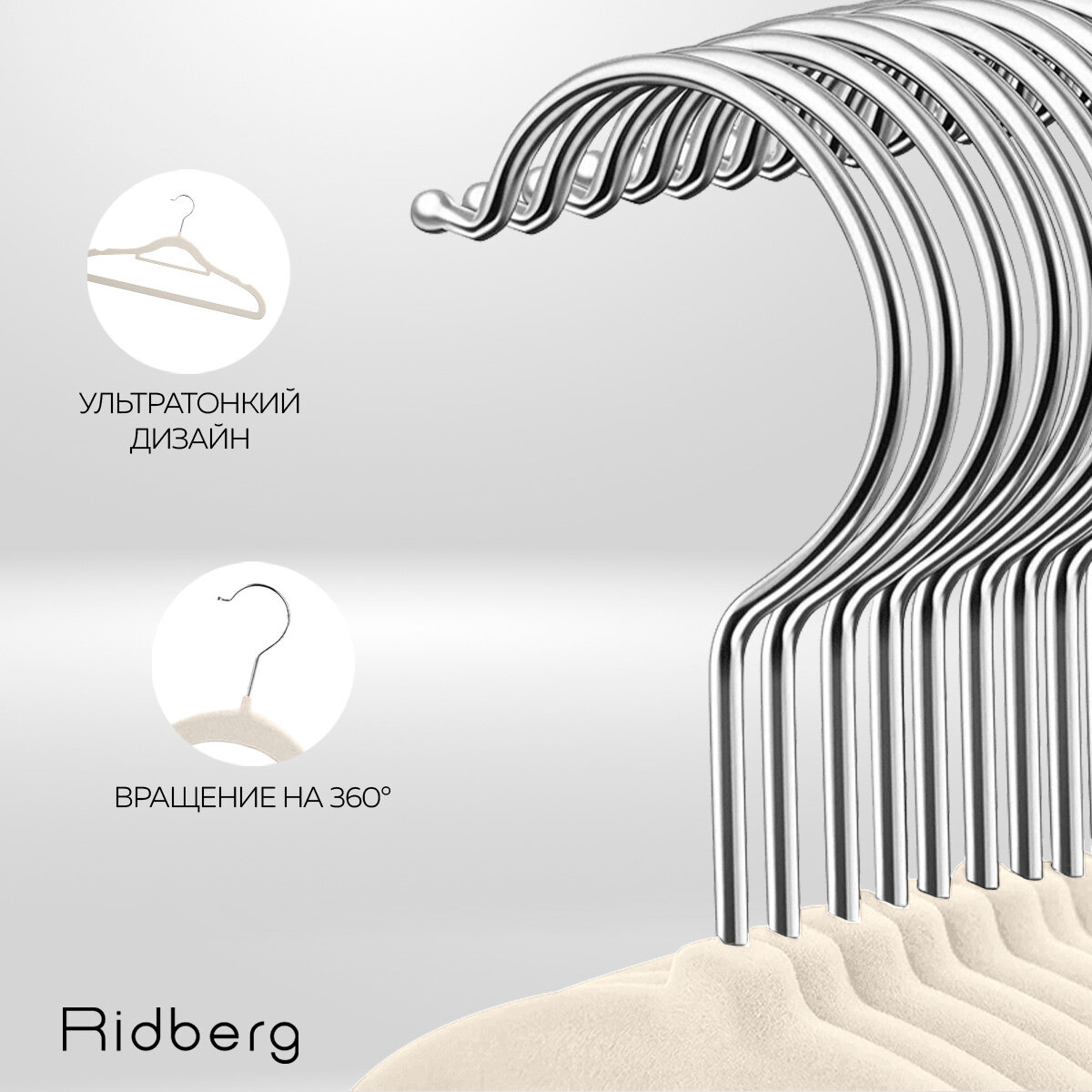Вешалки плечики для одежды бархатные Ridberg, набор 10 шт