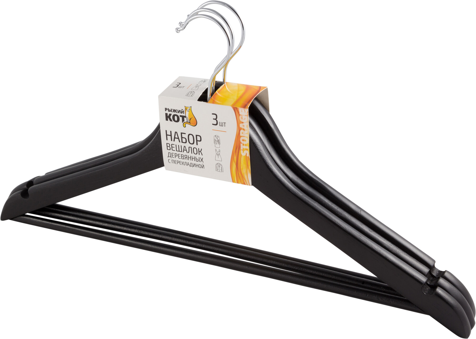 Вешалка деревянная с перекладиной "Рыжий Кот", цвет: черный, 3 шт.