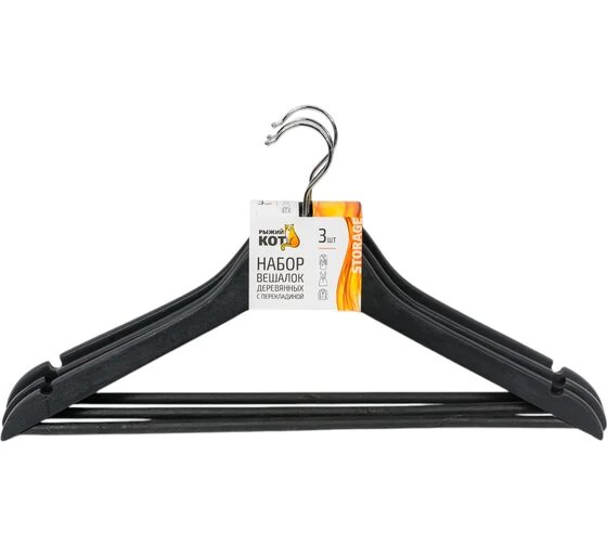 Набор вешалок Рыжий кот, 3шт, с перекладиной, дерево, цвет: черный