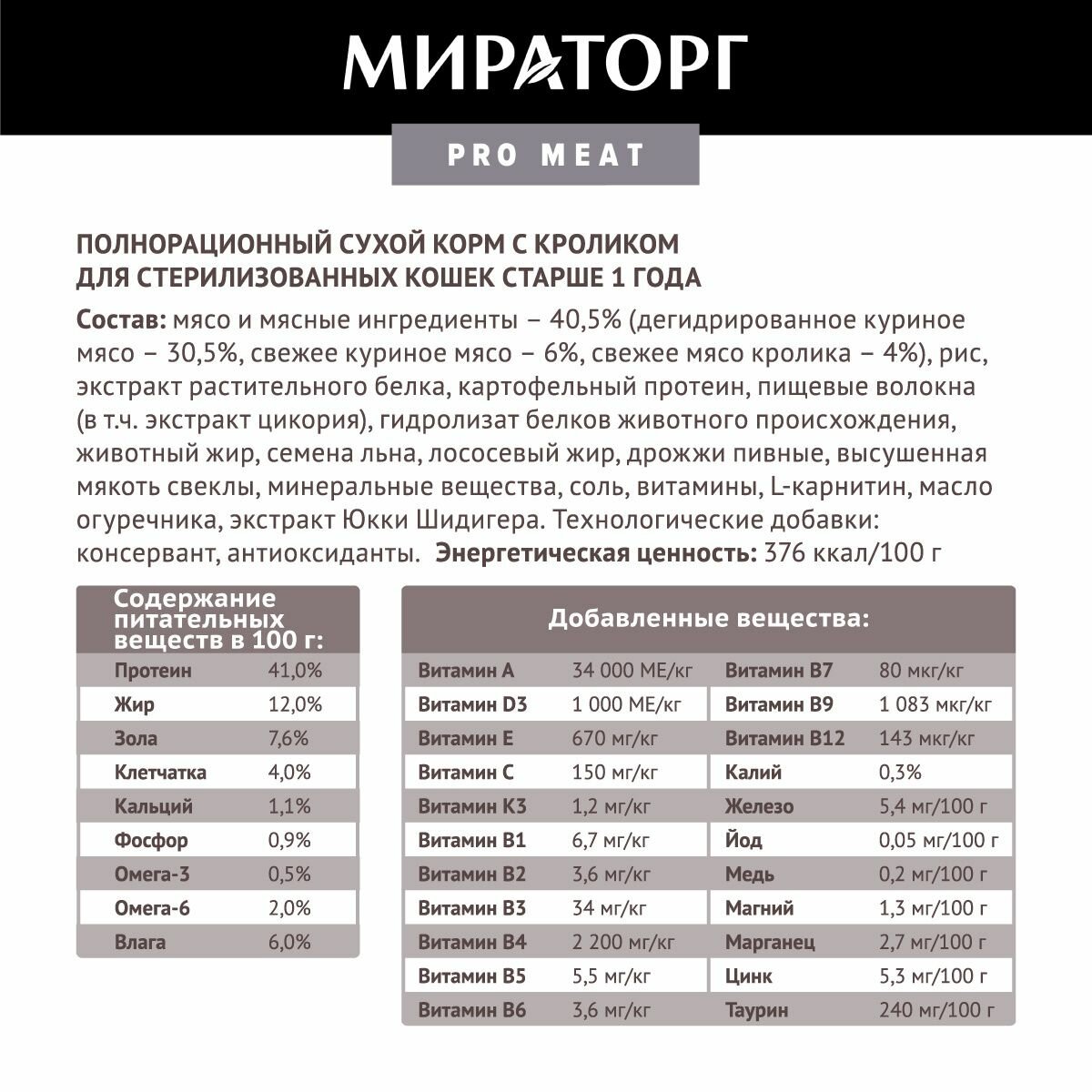 СохранитьКорм Мираторг Pro Meat Sterilized для стерилизованных кошек, с кроликом, 400 г интересное: