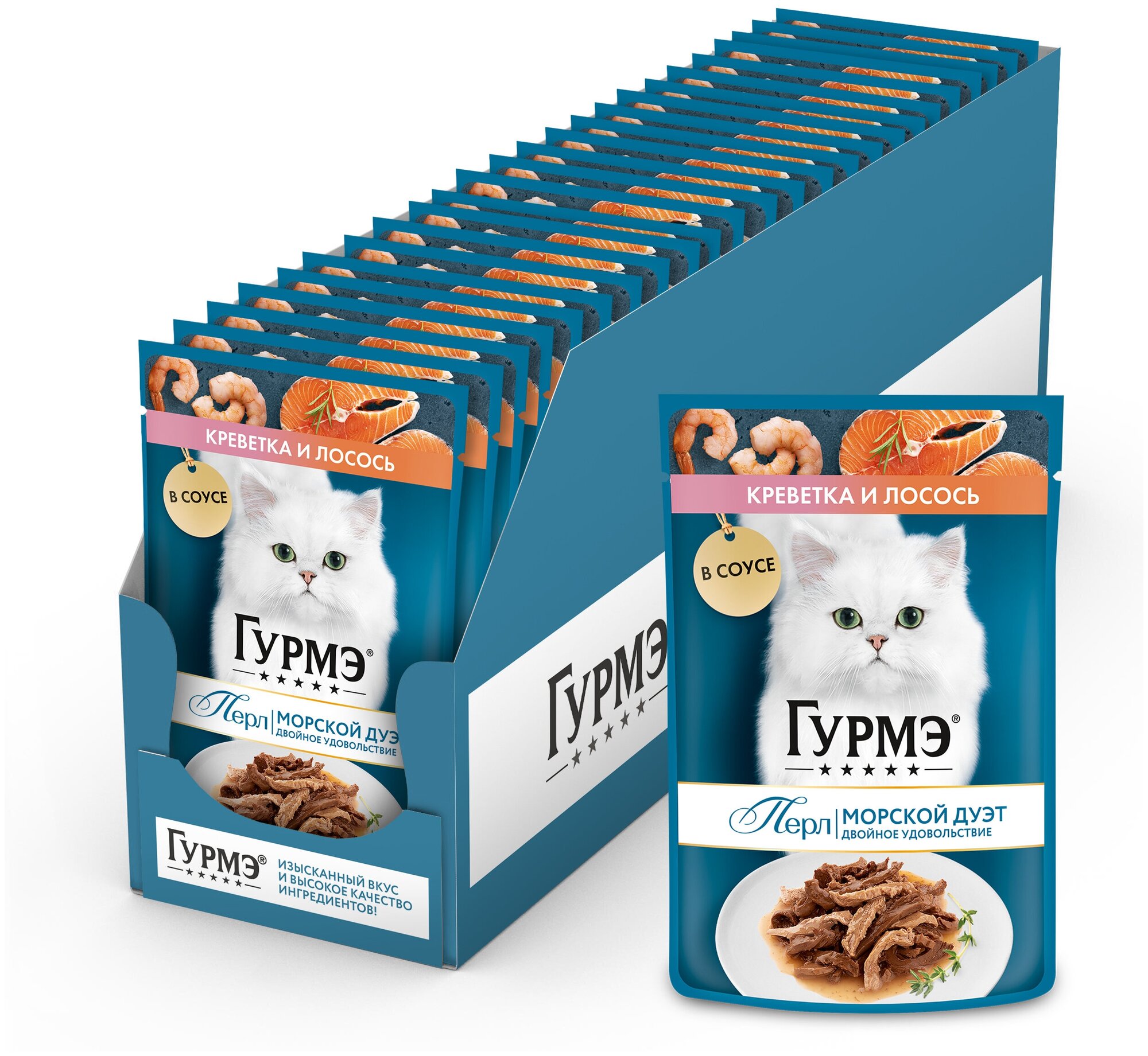 Гурмэ Перл Морской Дуэт 75 г влажный корм для взрослых кошек, со вкусом креветки и лосося, нежное филе в соусе х26 штук