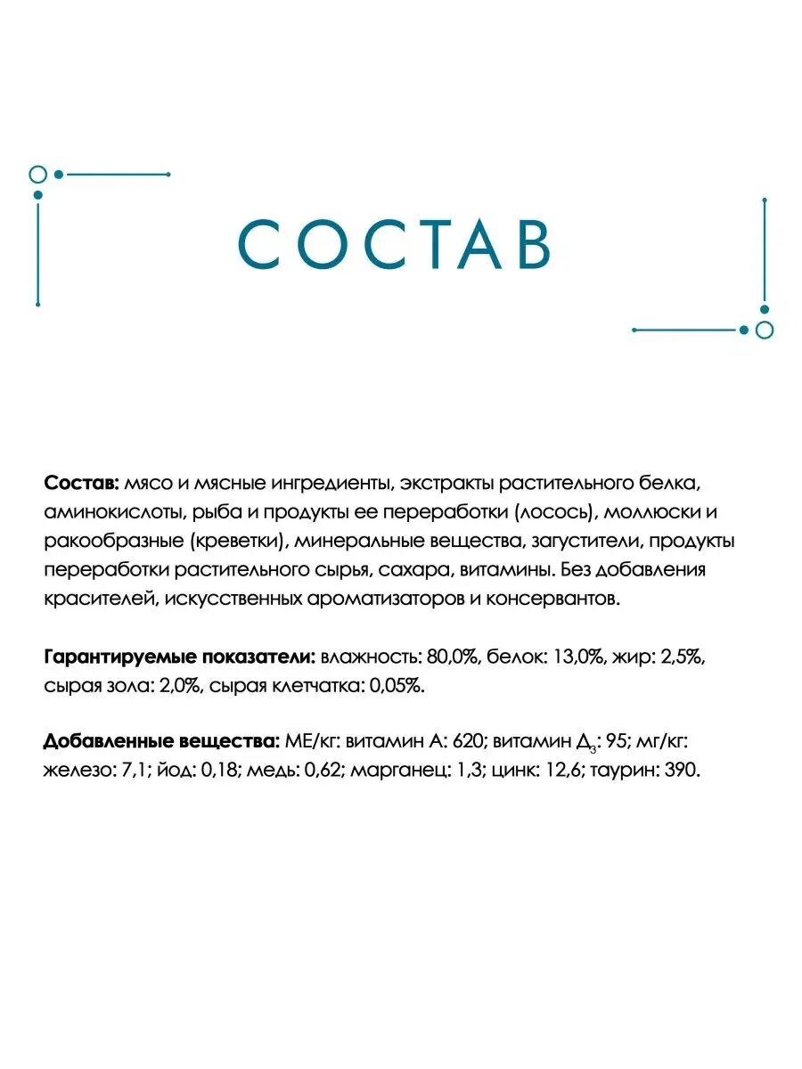 СохранитьВлажный корм Паучи Пурина Гурмэ Перл Морской дуэт для взрослых кошек филе в соусе креветка и лосось (цена за упаковку) 75г х 26шт интересное: